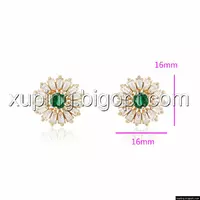 Серьги позолоченные, Ромашка с зеленым цирконием, гвоздики