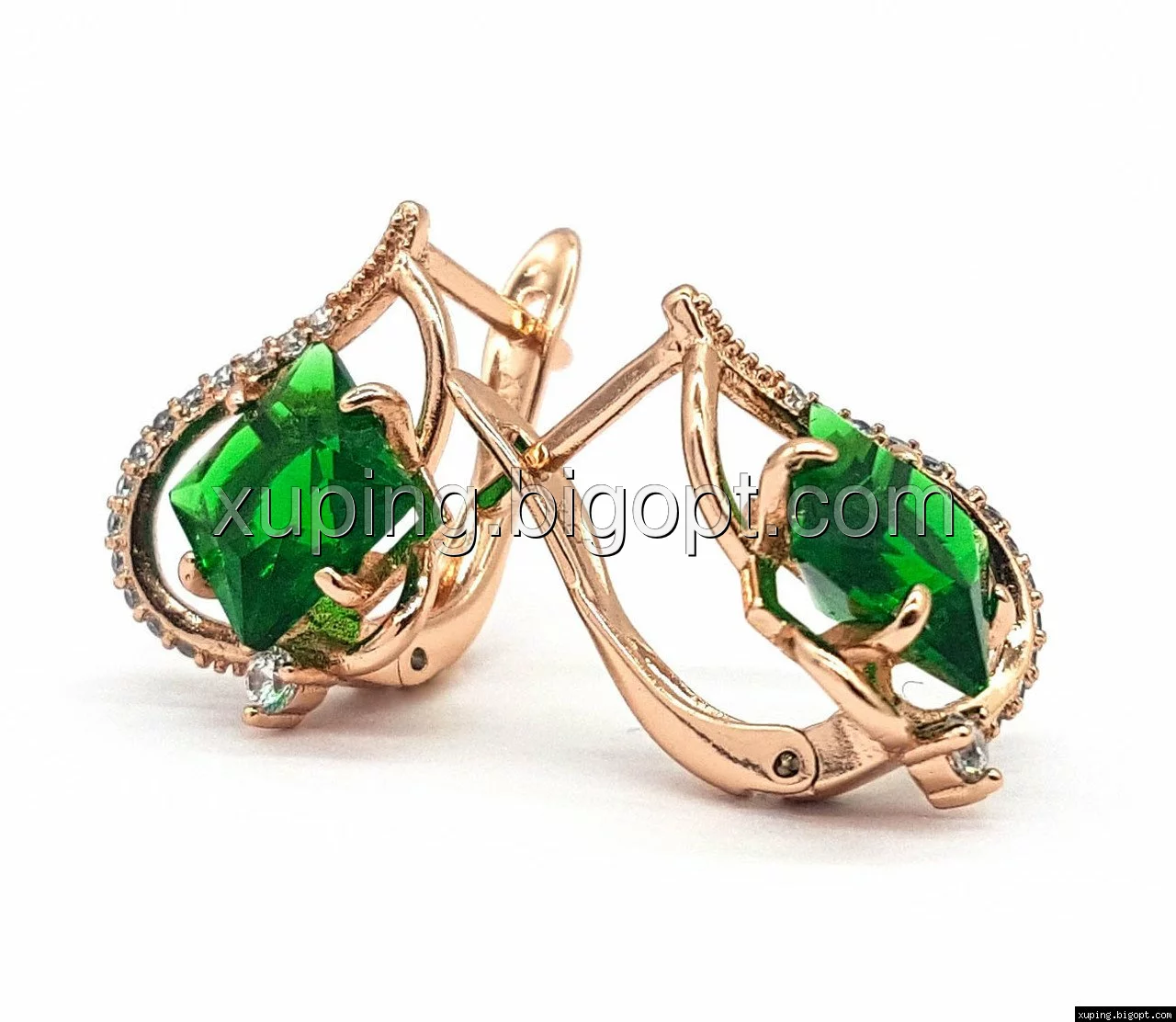 Серьги позолоченные, Ромб с зеленым цирконием, англ.замок,14К