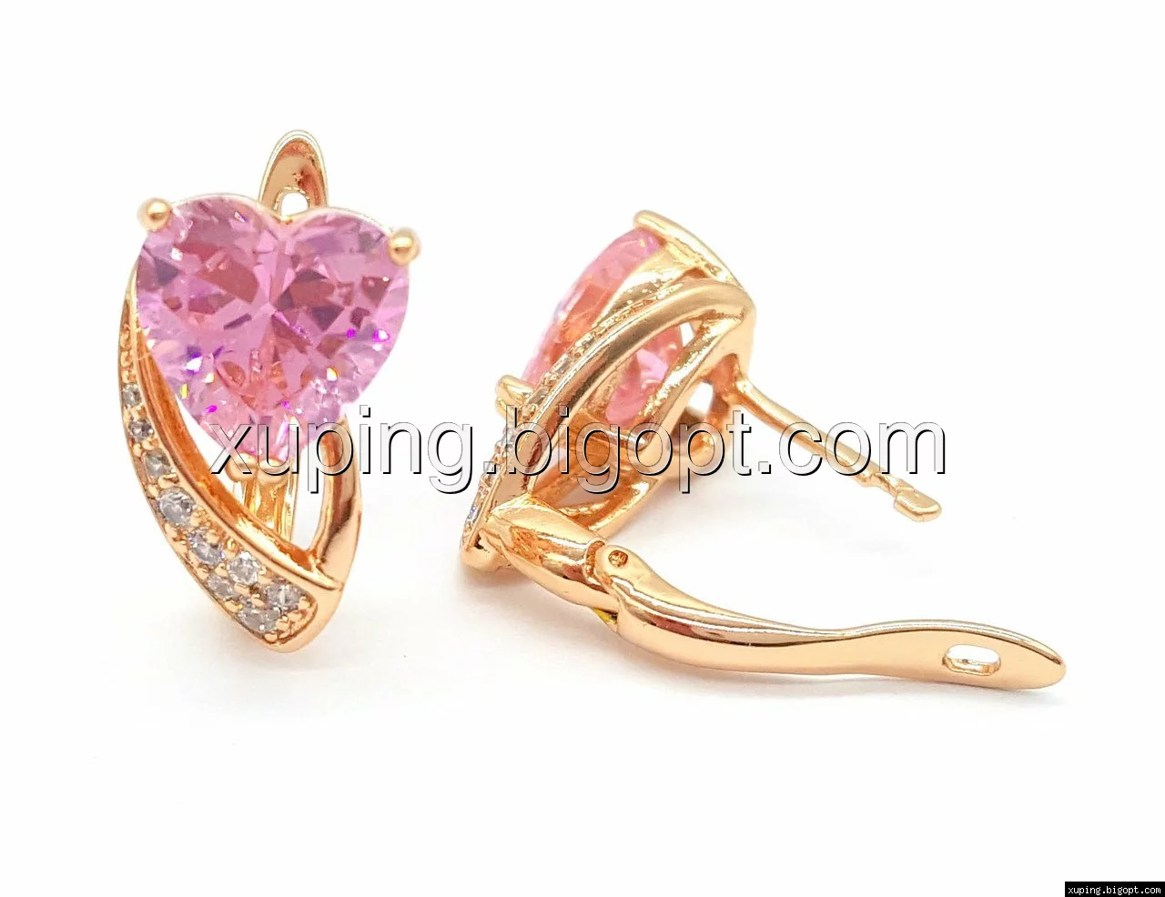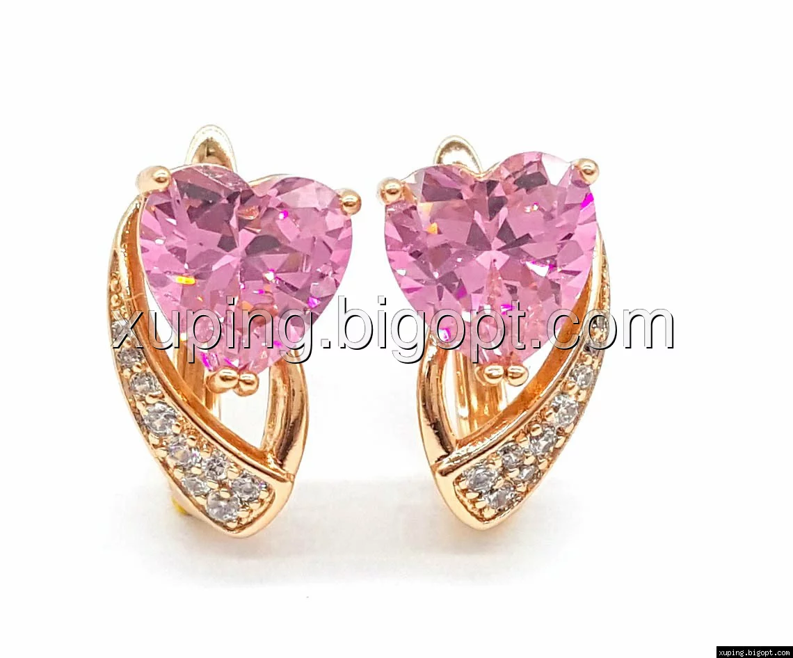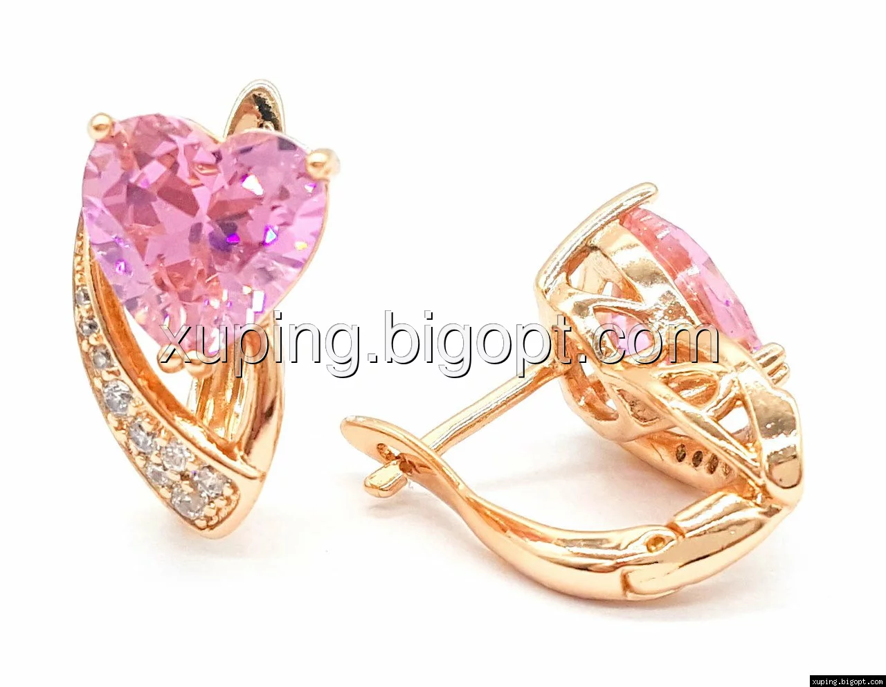 Серьги позолоченные, Розовое Серде, с циркония, англ.замок