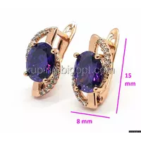 Серьги позолоченные, с фиолетовым цирконием, англ.замок, 14К