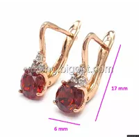 Серьги позолоченные, с красным камнем, англ.замок, 14К
