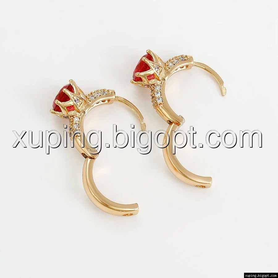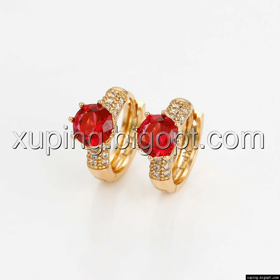 Сережки позолота Xuping, Кілечка з червоним цирконієм, 18К