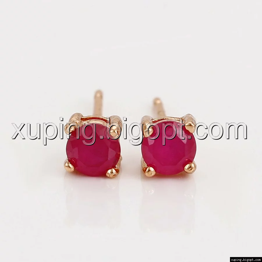 Серьги позолоченные, с рубиновым цирконием, гвоздики