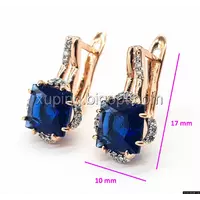 Серьги позолоченные, с синим камнем, англ.замок, 14К