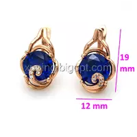 Серьги позолоченные, с синим цирконием, англ.замок, 14к