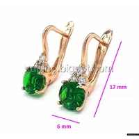 Серьги позолоченные, с зеленым камнем, англ.замок, 14К