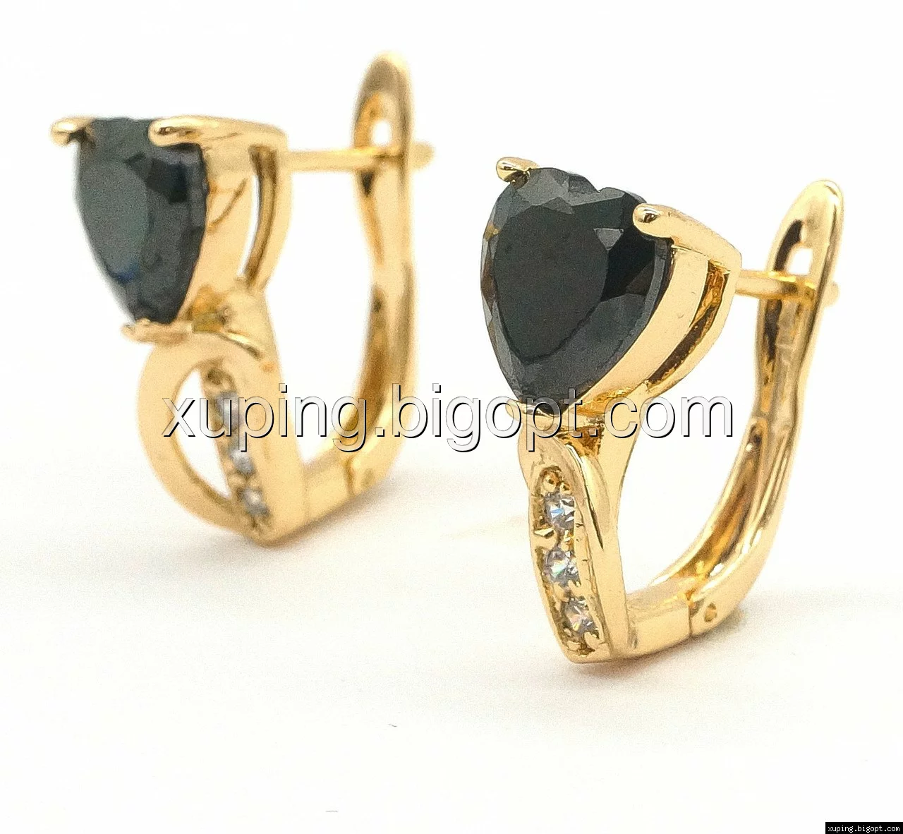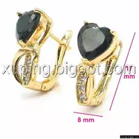Сережки позолочені, Серце, з чорним цирконієм, англ.замок, Xuping, 18К