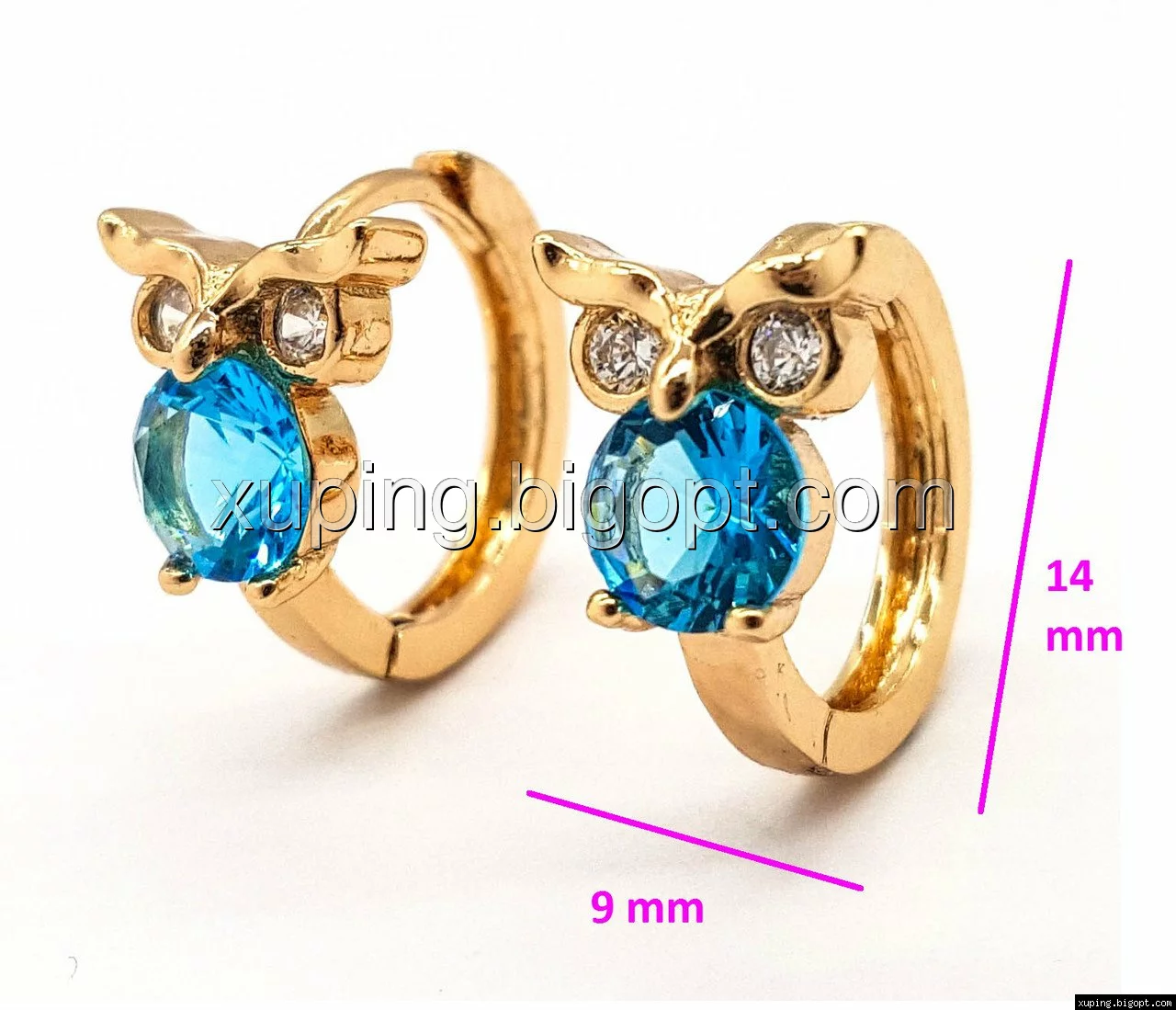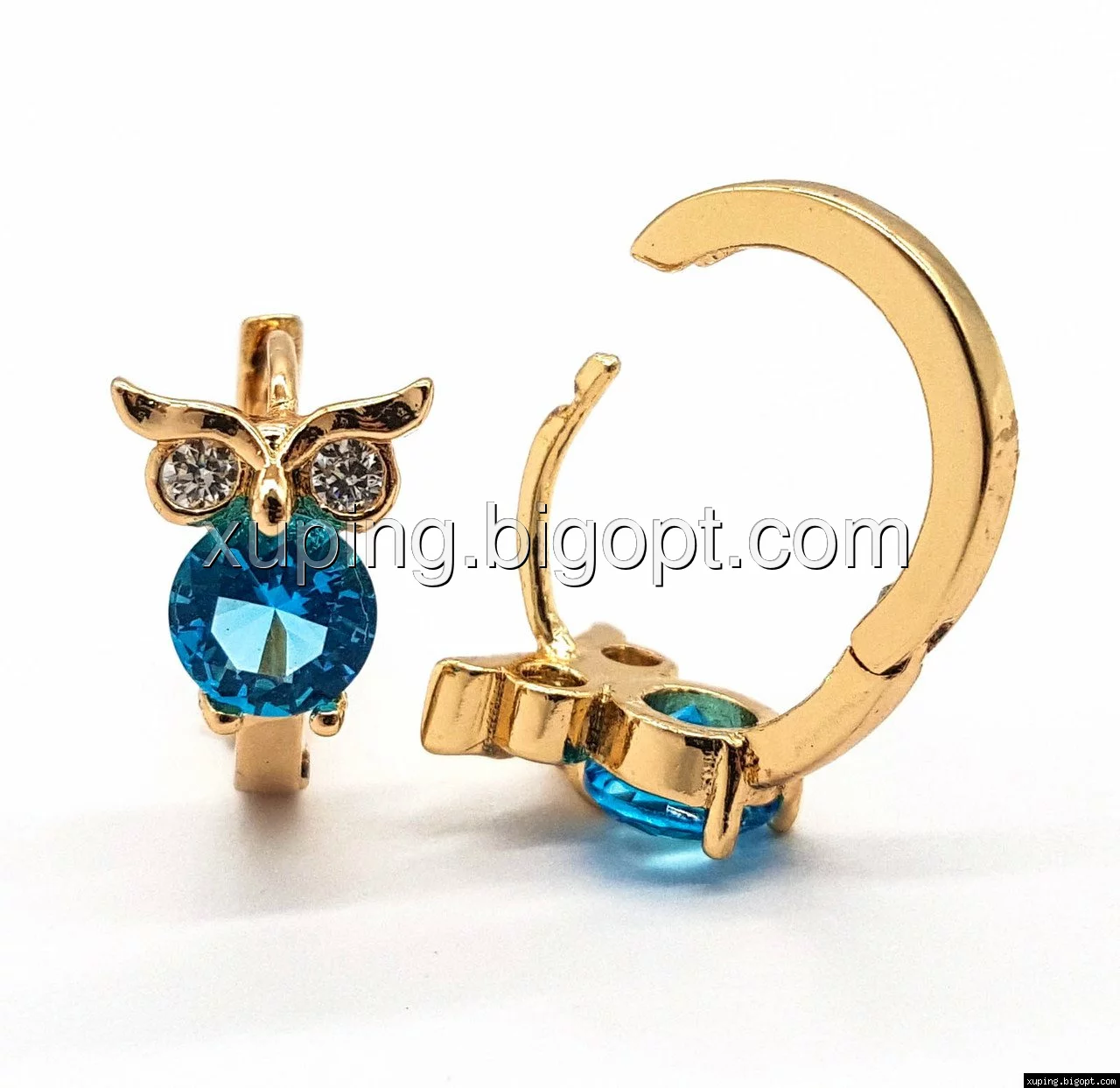 Серьги позолоченные, Совенок, с бирюзовым цирконием