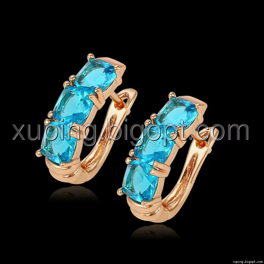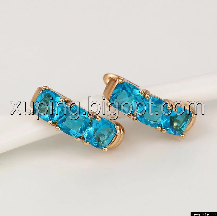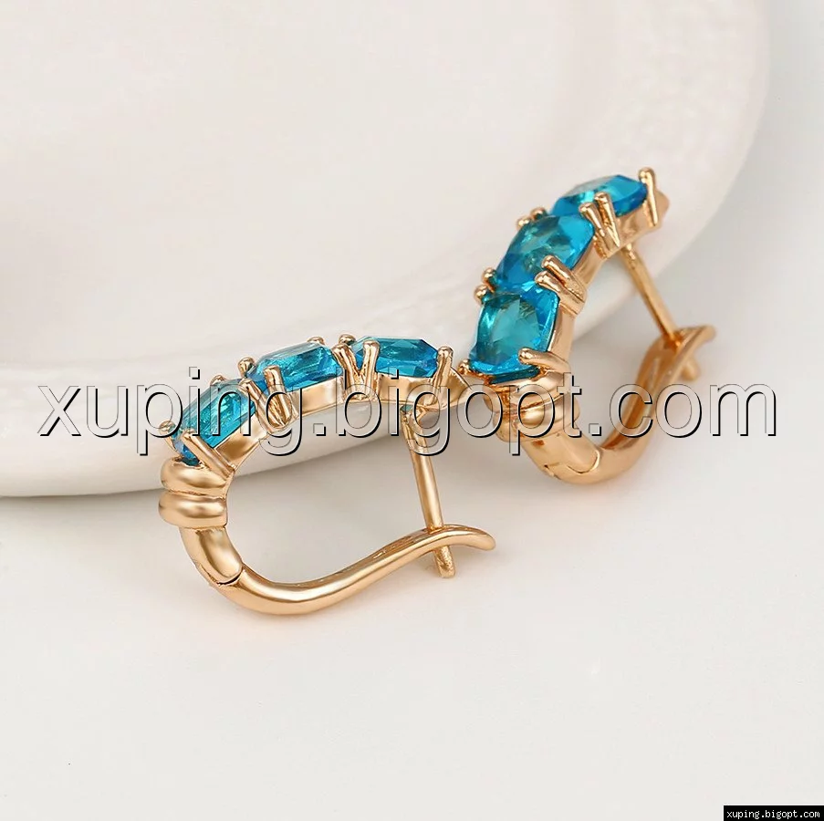 Сережки позолота Xuping, Доріжка з блакитиним цирконієм, англ. замок, 14К