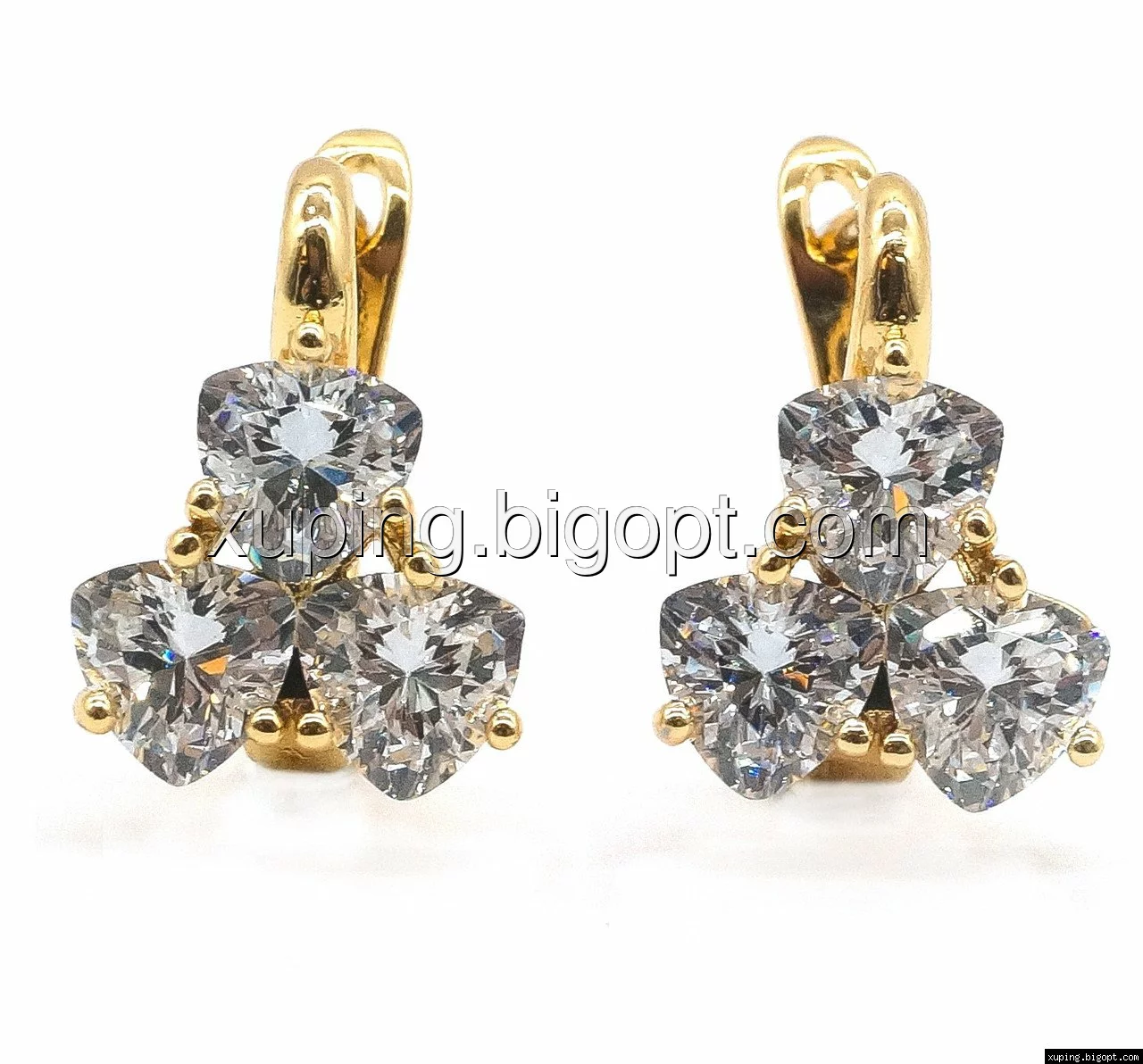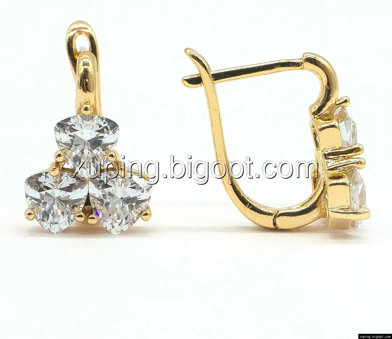 Сережки позолота Xuping, Три цирконія, англ.замок, 18К