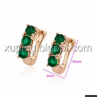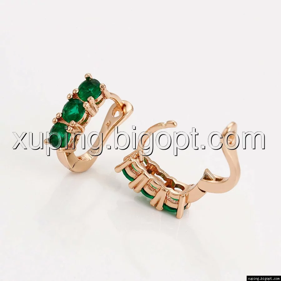 Сережки позолота Xuping, Три зелених цирконія, англ.замок, 14К