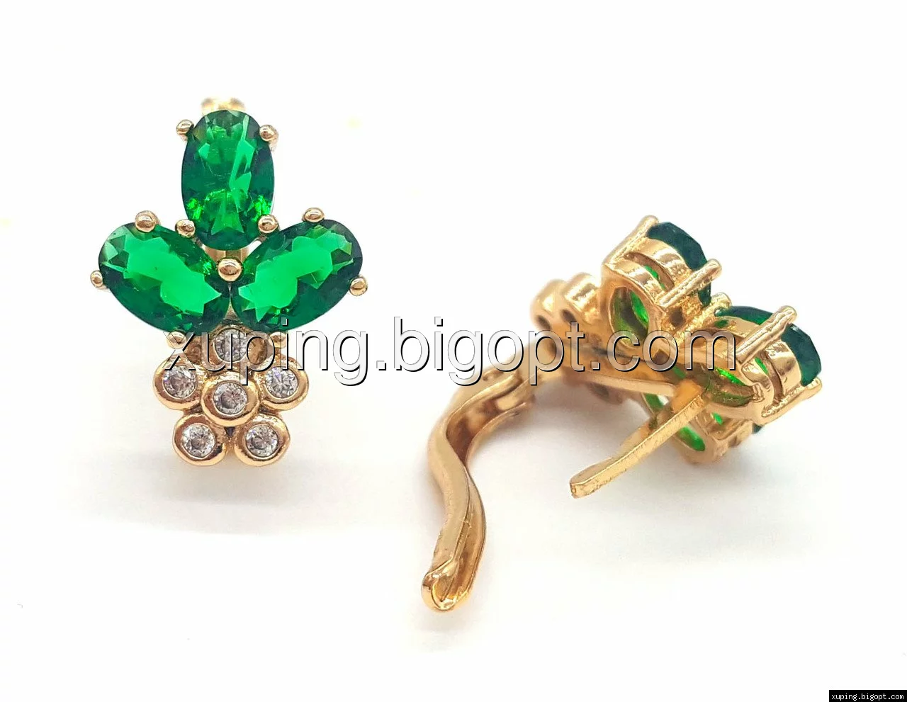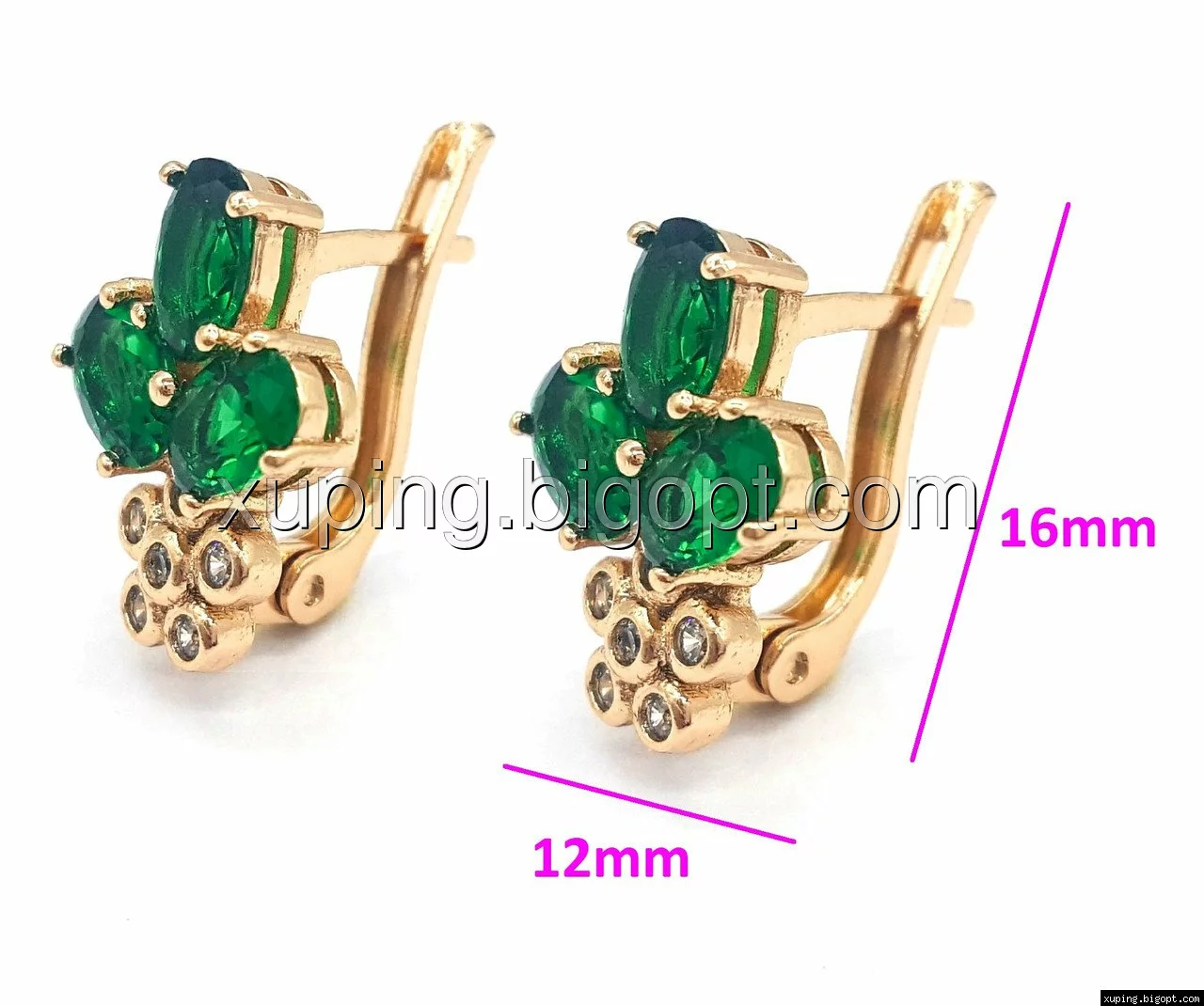 Сережки Три Зелених цирконія, англ.замок, позолота Xuping, 18К