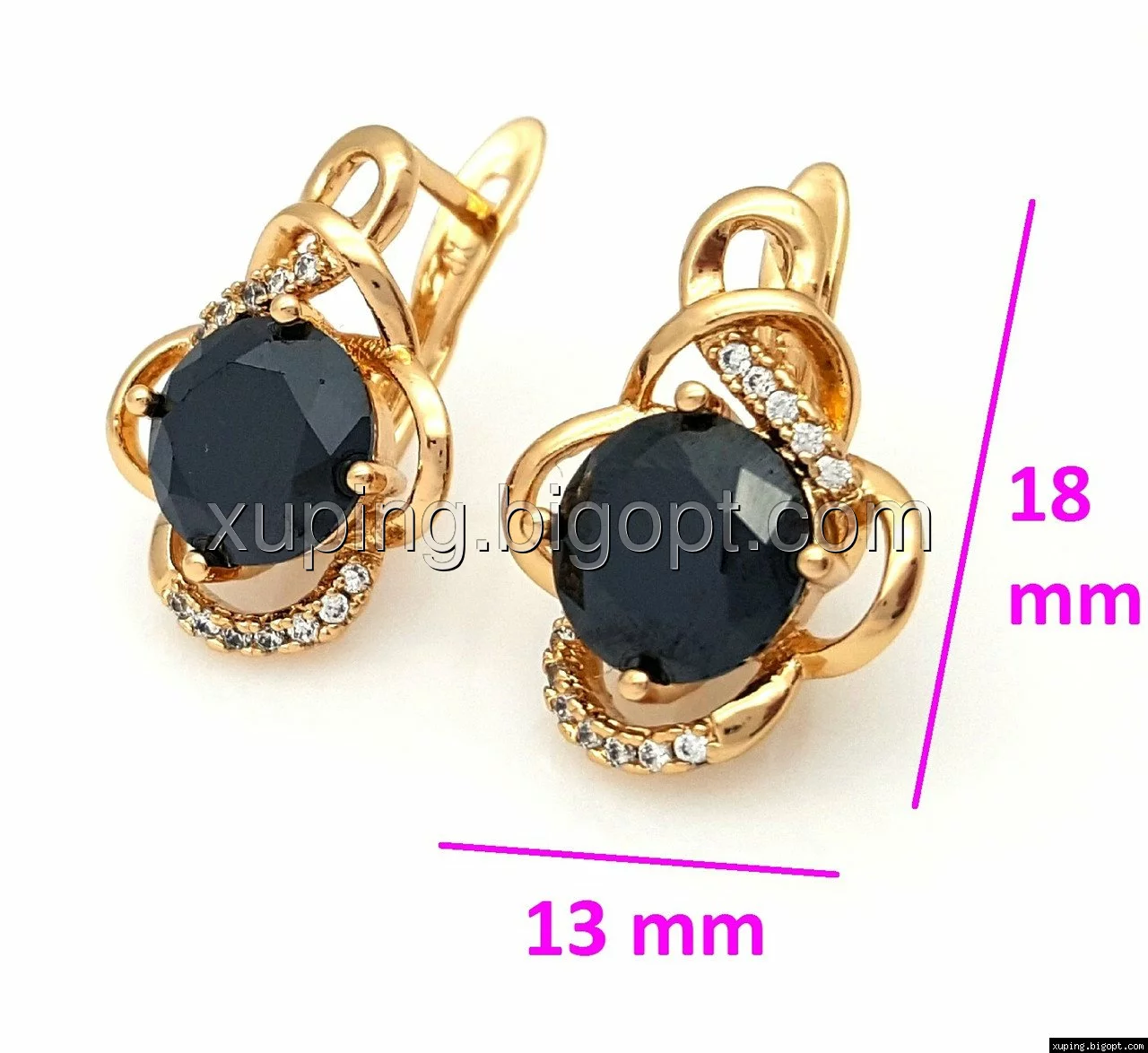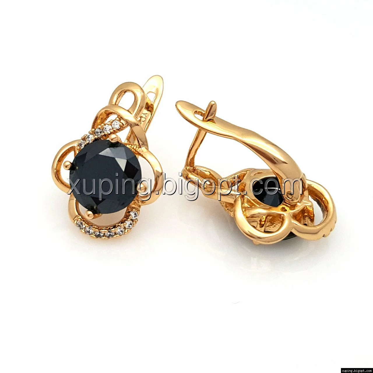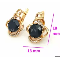 Позолочені сережки, Квітка з чорним цирконієм, англ.замок, Xuping, 18К
