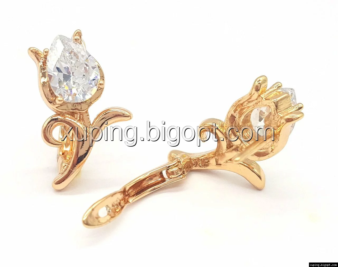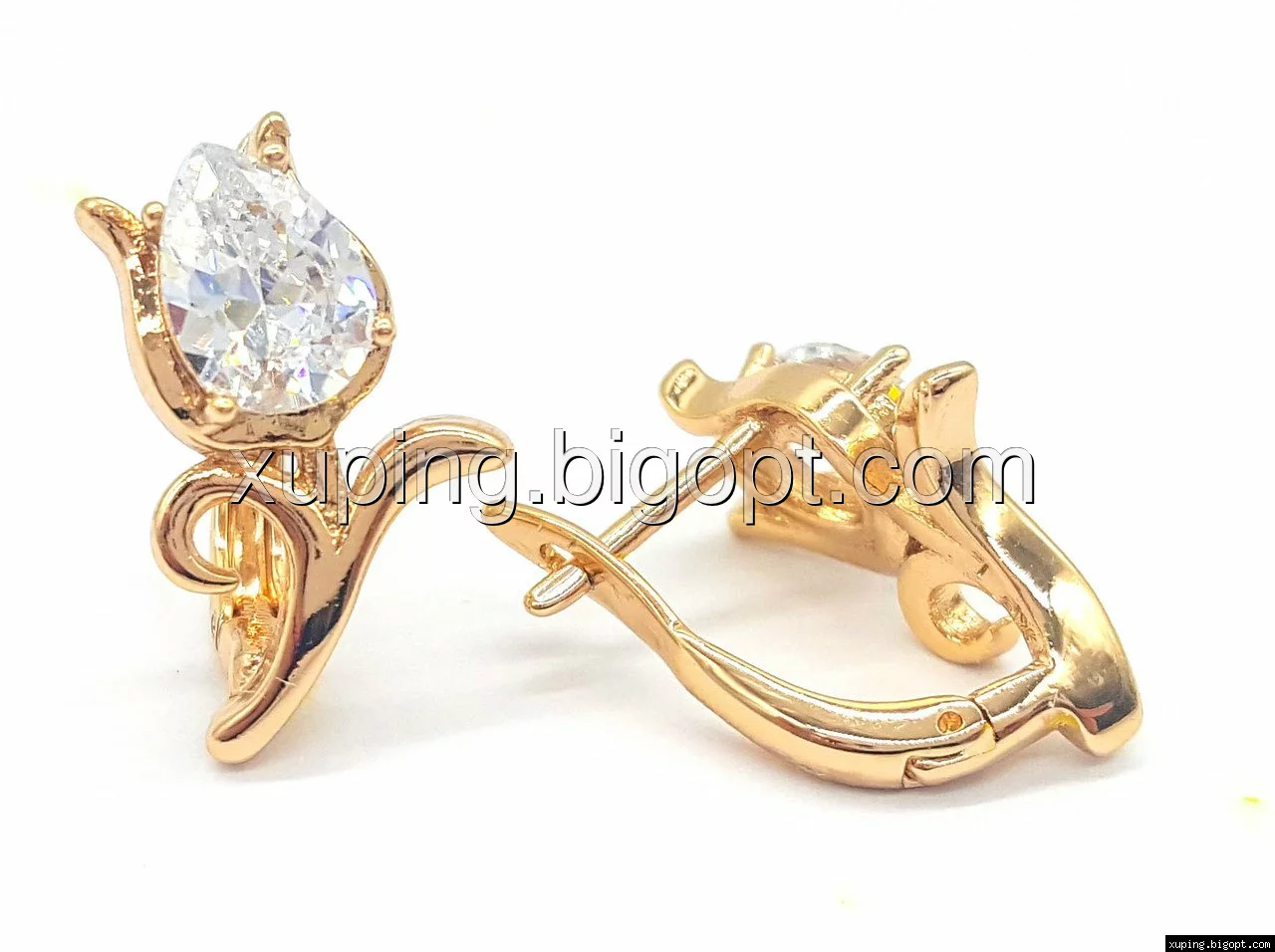 Сережки позолота,Тюльпан зі вставкою цирконія, англ.замок, Xuping, 18К