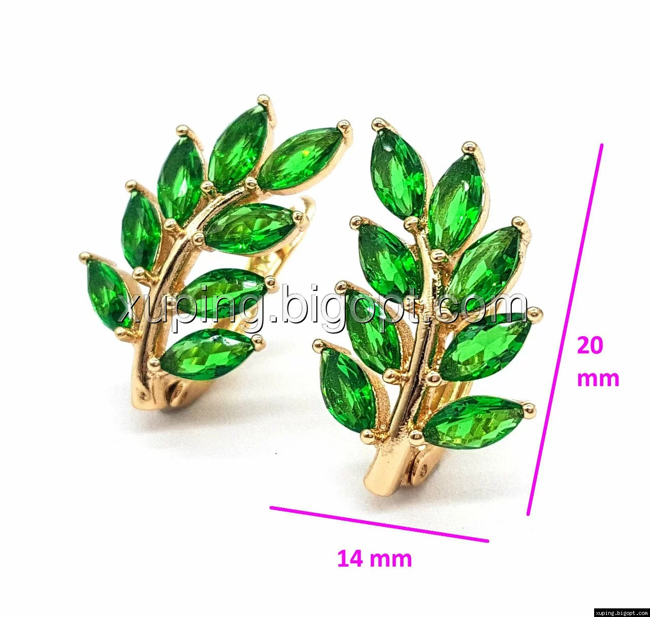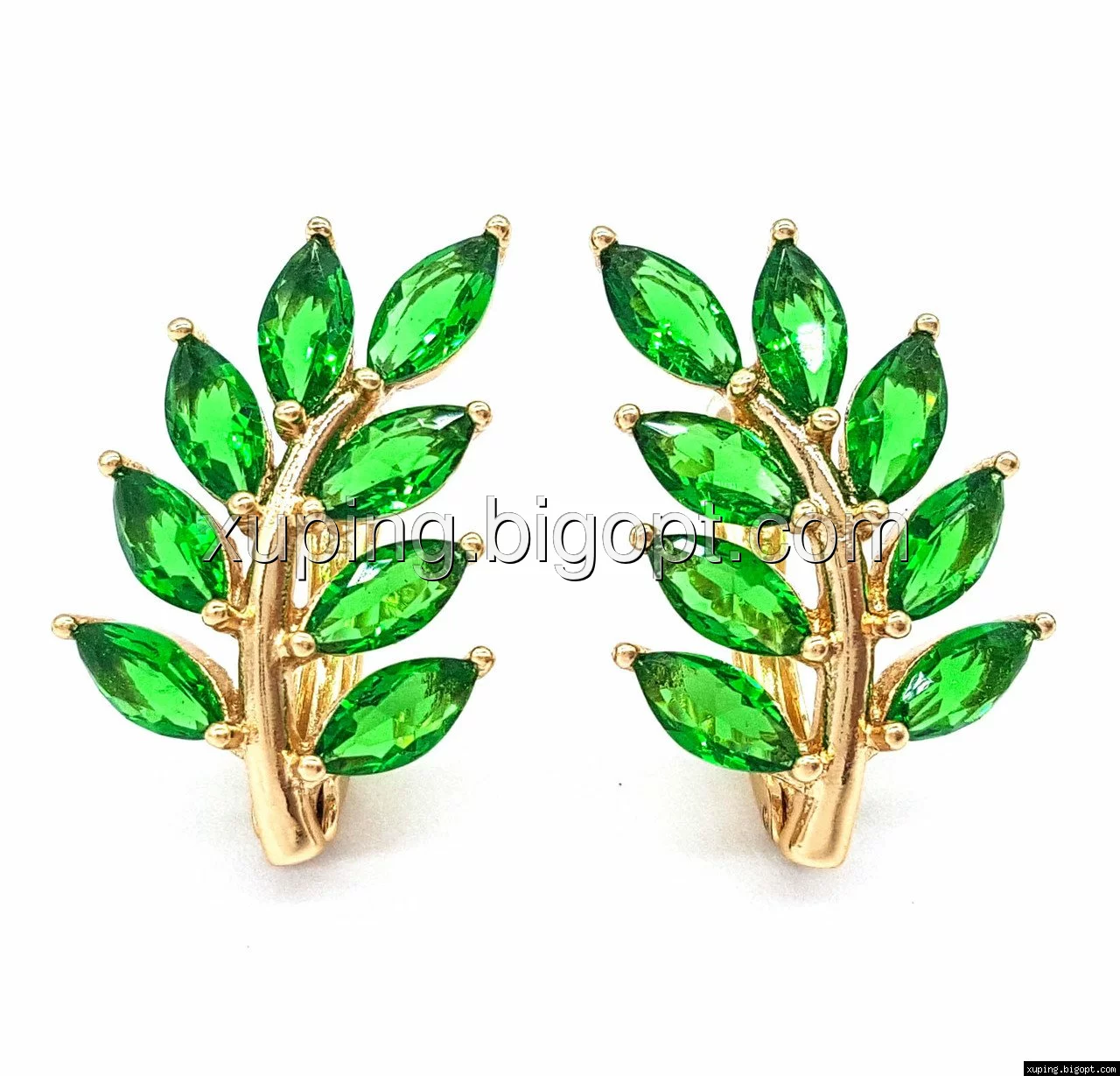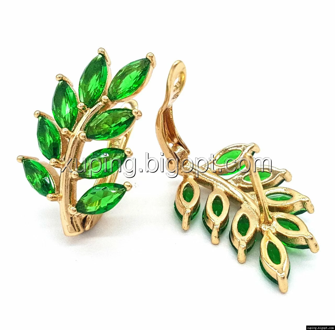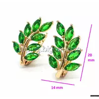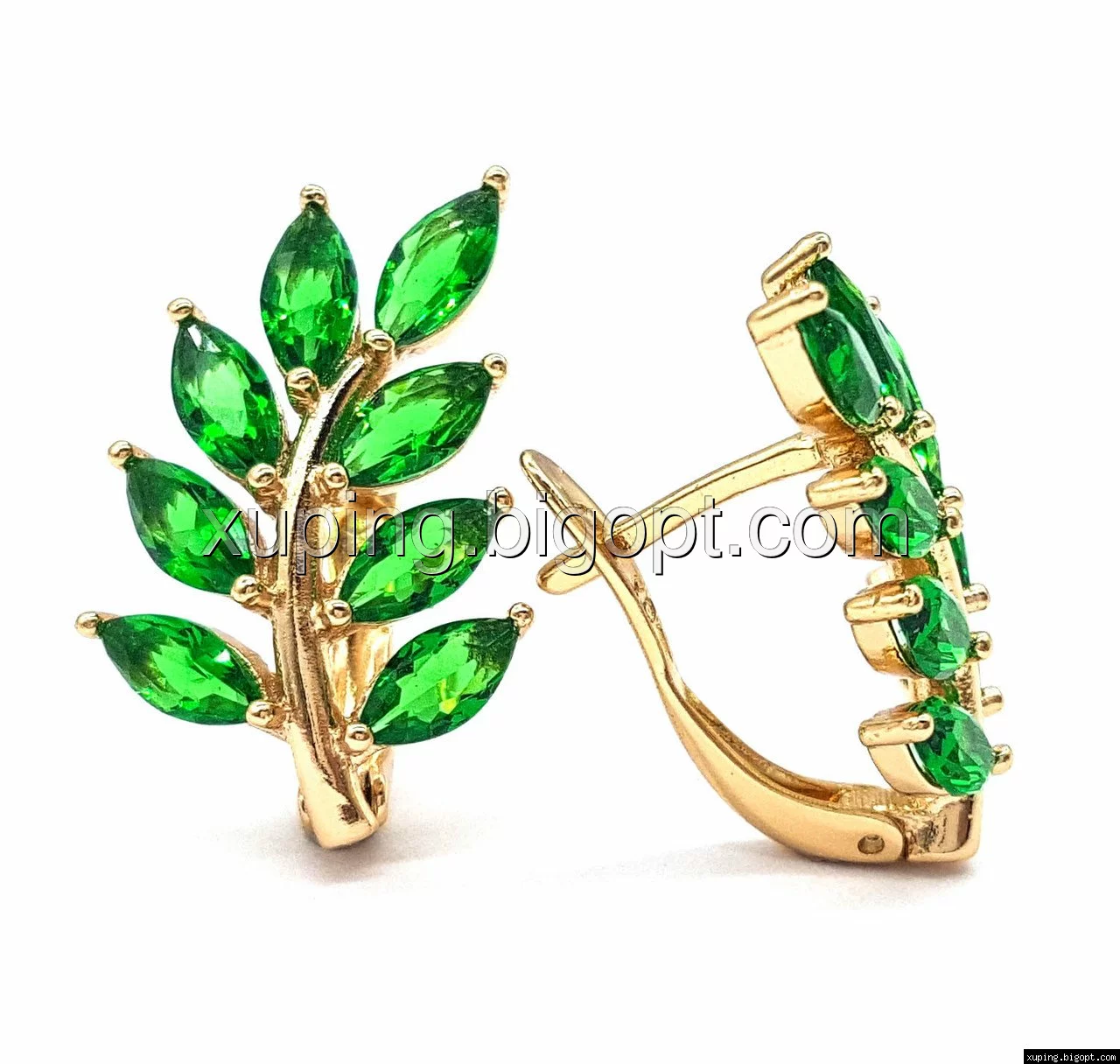 Серьги позолоченные, Веточка с зеленым цирконием, англ.замок