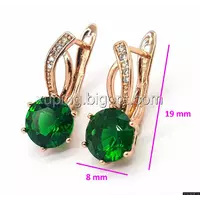 Серьги позолоченные, Зеленый цирконий, англ.замок, 14К