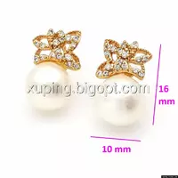 Серьги позолоченные, "Жемчужина Нила" с камнями, гвоздики Xuping
