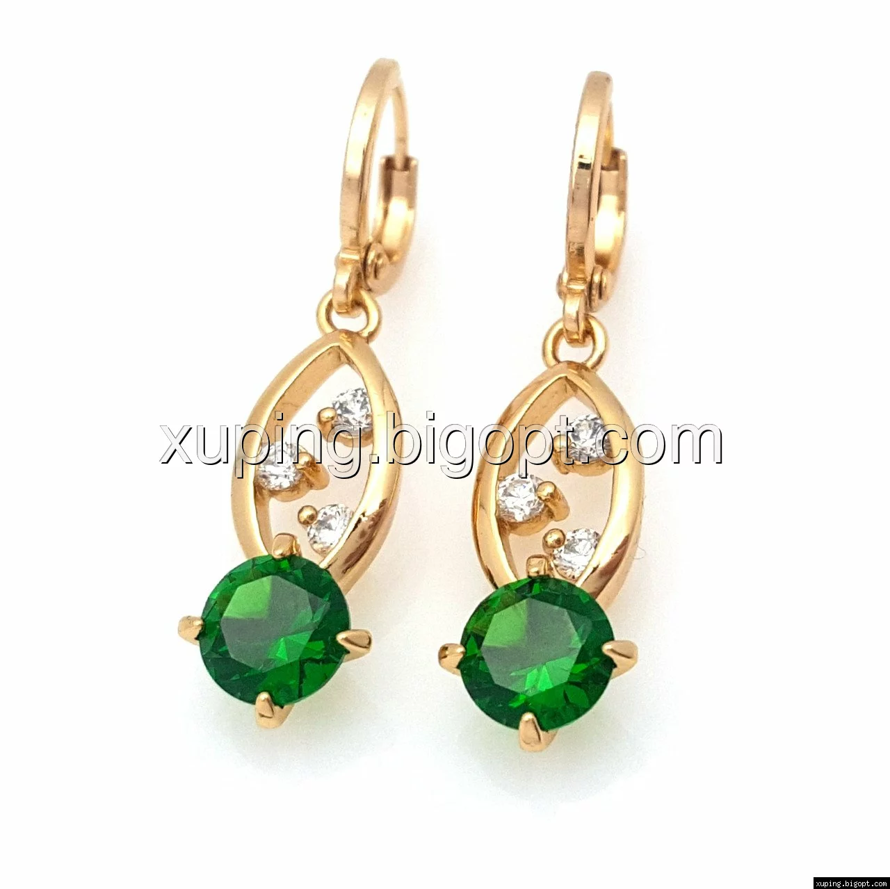 Серьги позолота 704726, Элипс с зеленым цирконием, висюльки Xuping