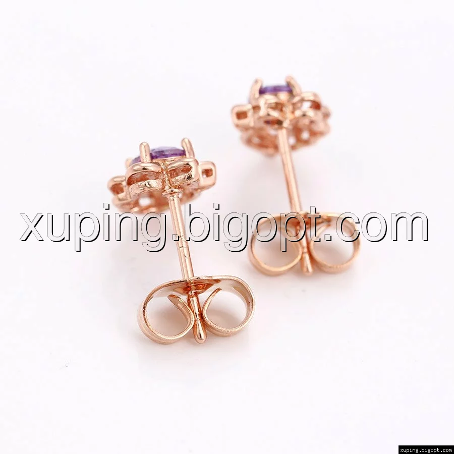 Серьги позолота, Фигурные гвоздики с фиолетовым цирконием