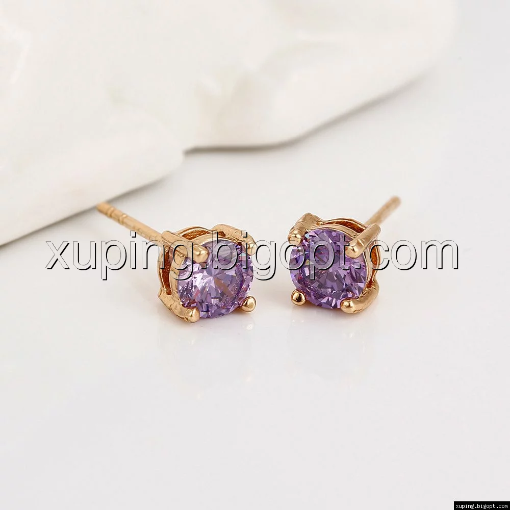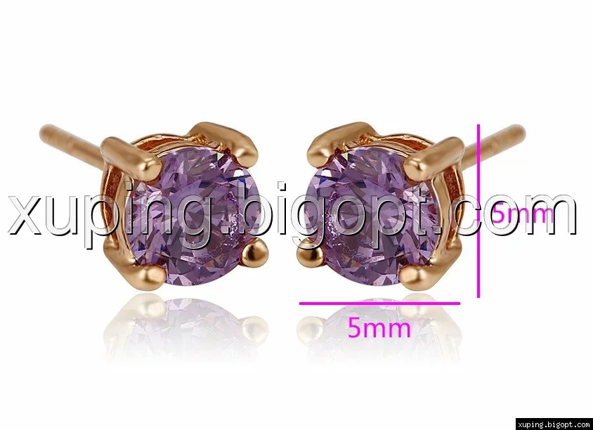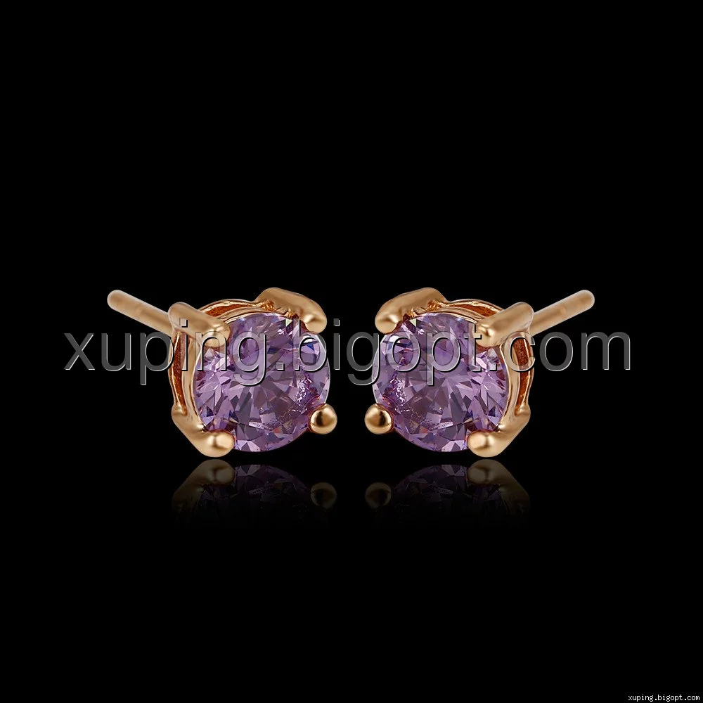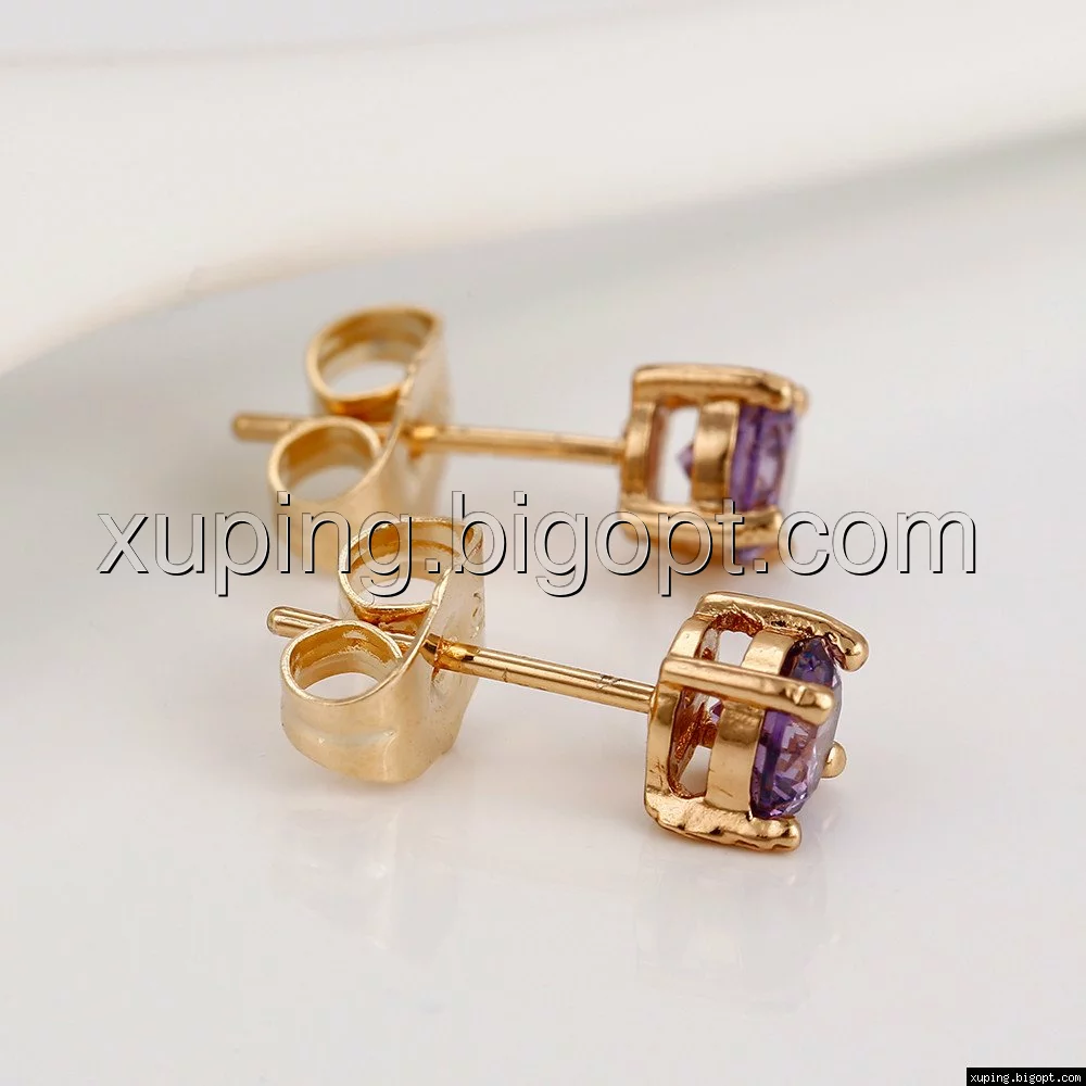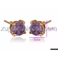 Серьги позолота, гвоздики с фиалковым цирколнием