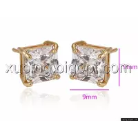 Серьги позолота, гвоздики с квадратным цирконием