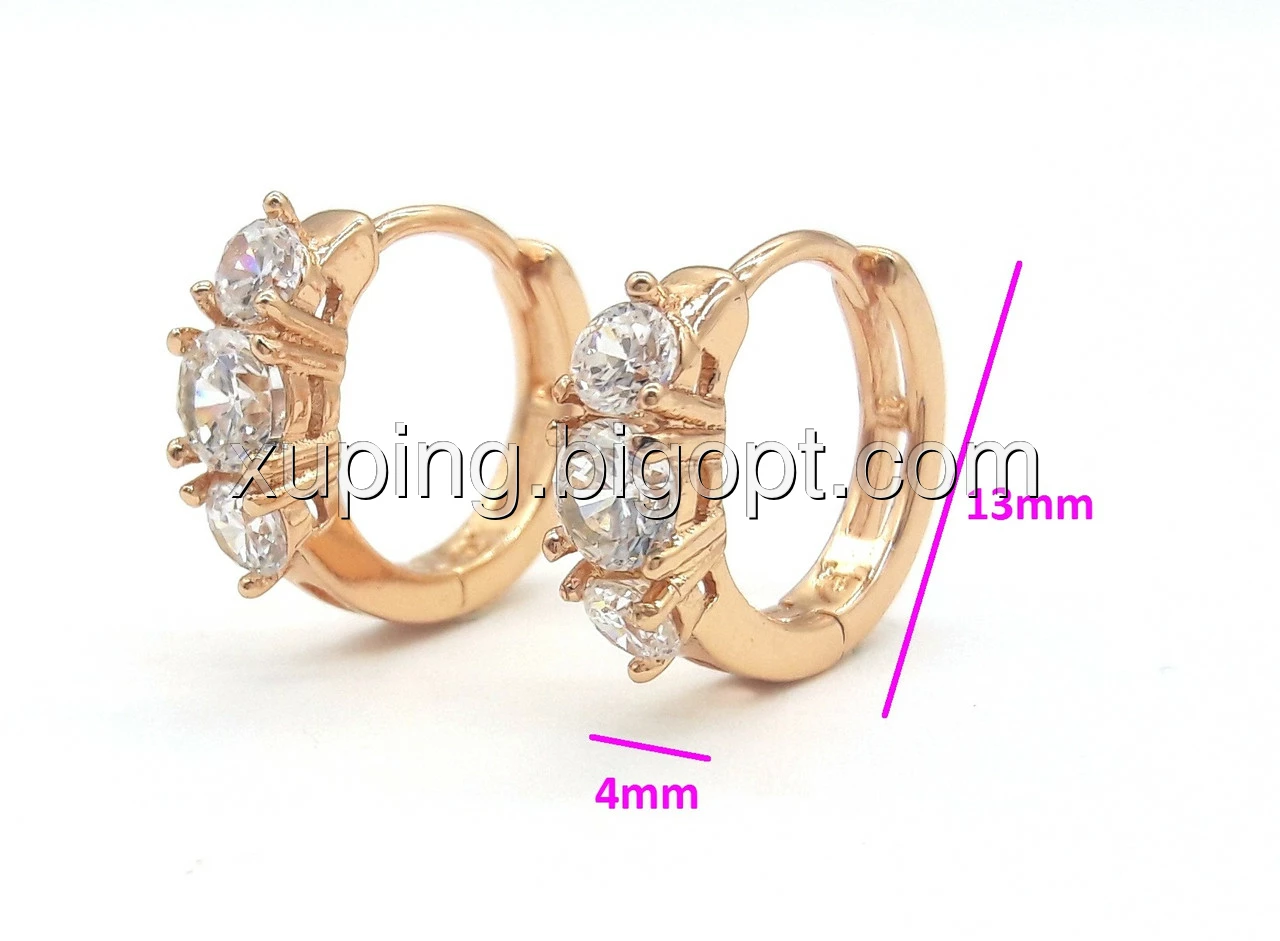 Сережки позолота, Колечка три цирконію, Xuping,18К