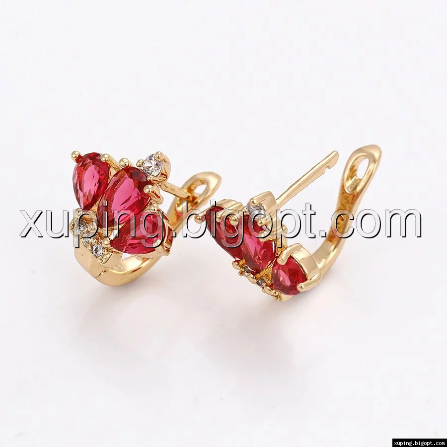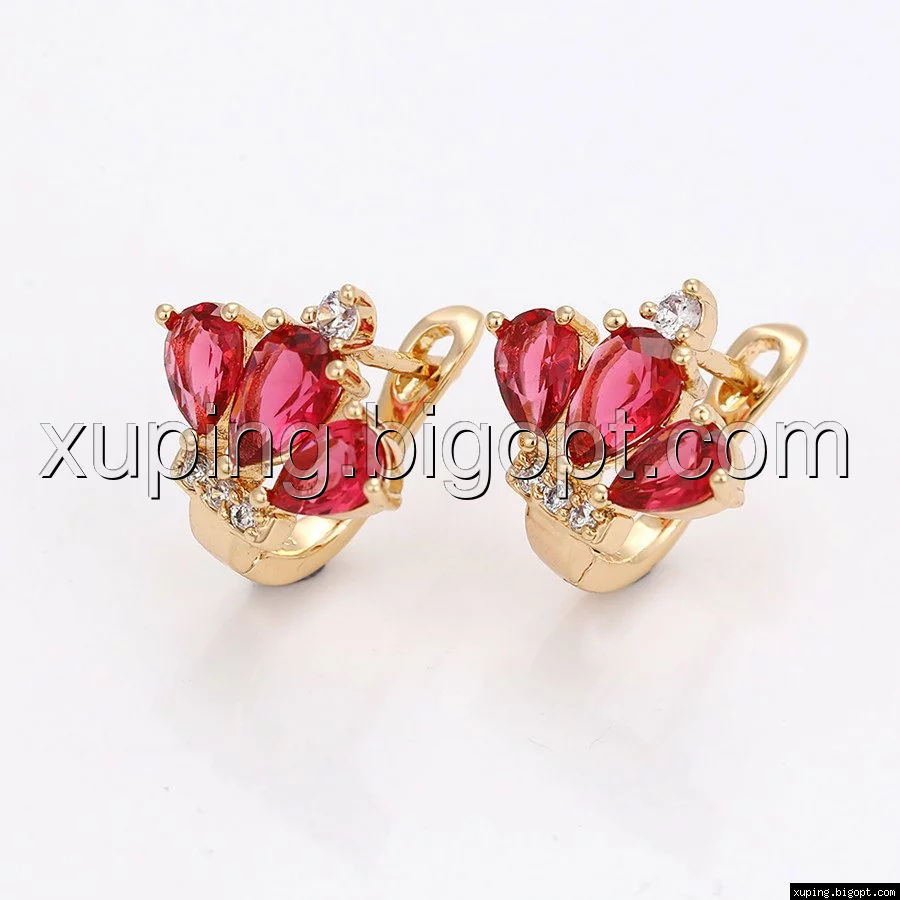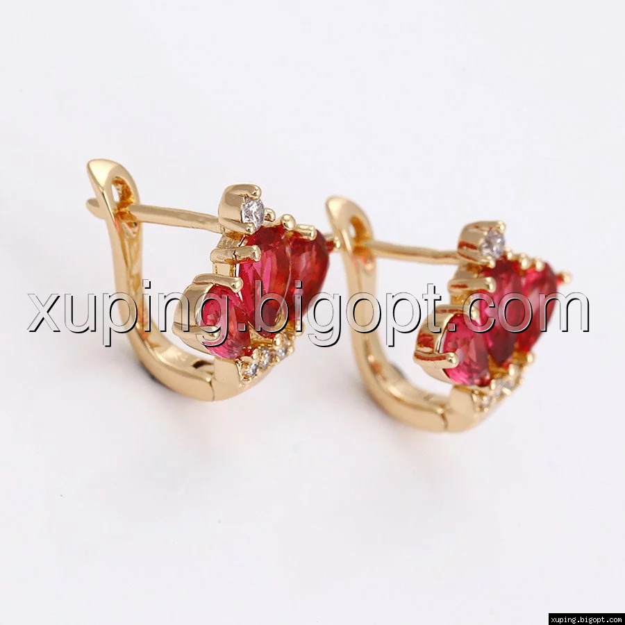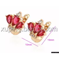 Сережки позолочені Xuping, Корона з цирконієм під рубін, англ.замок,18К