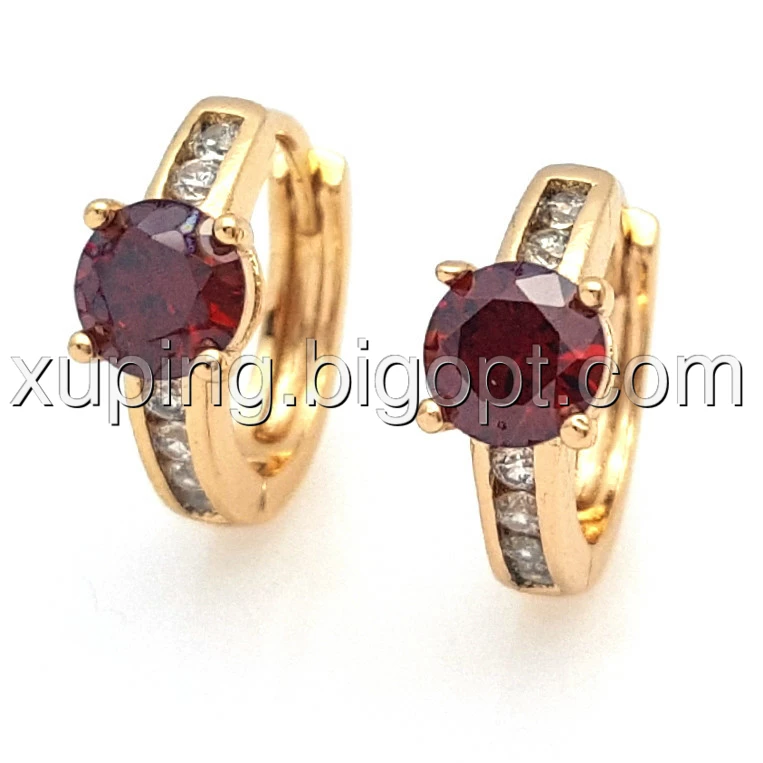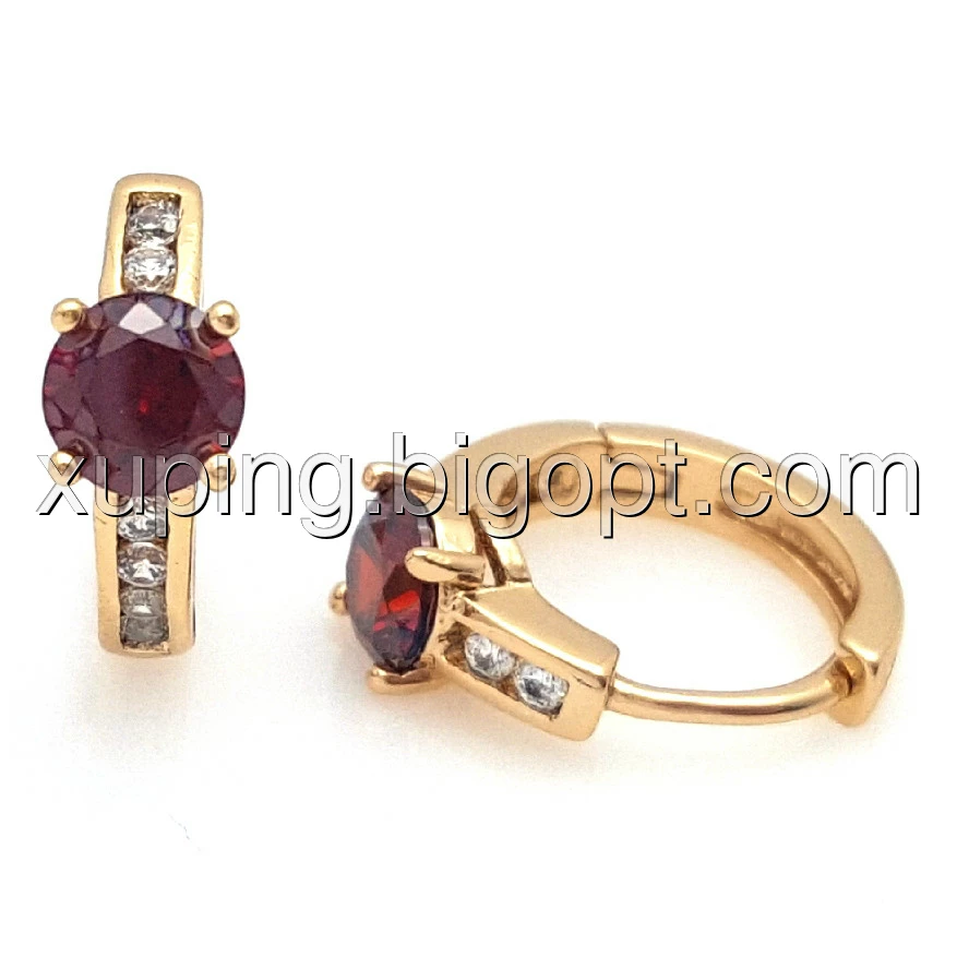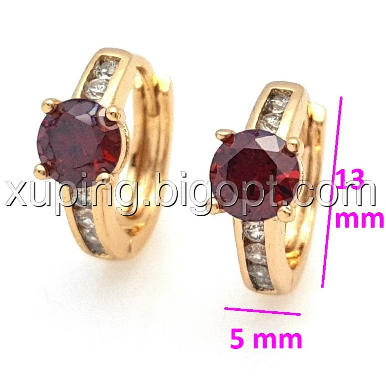 Серьги позолота Xuping 704768, Колечка с красным камнем