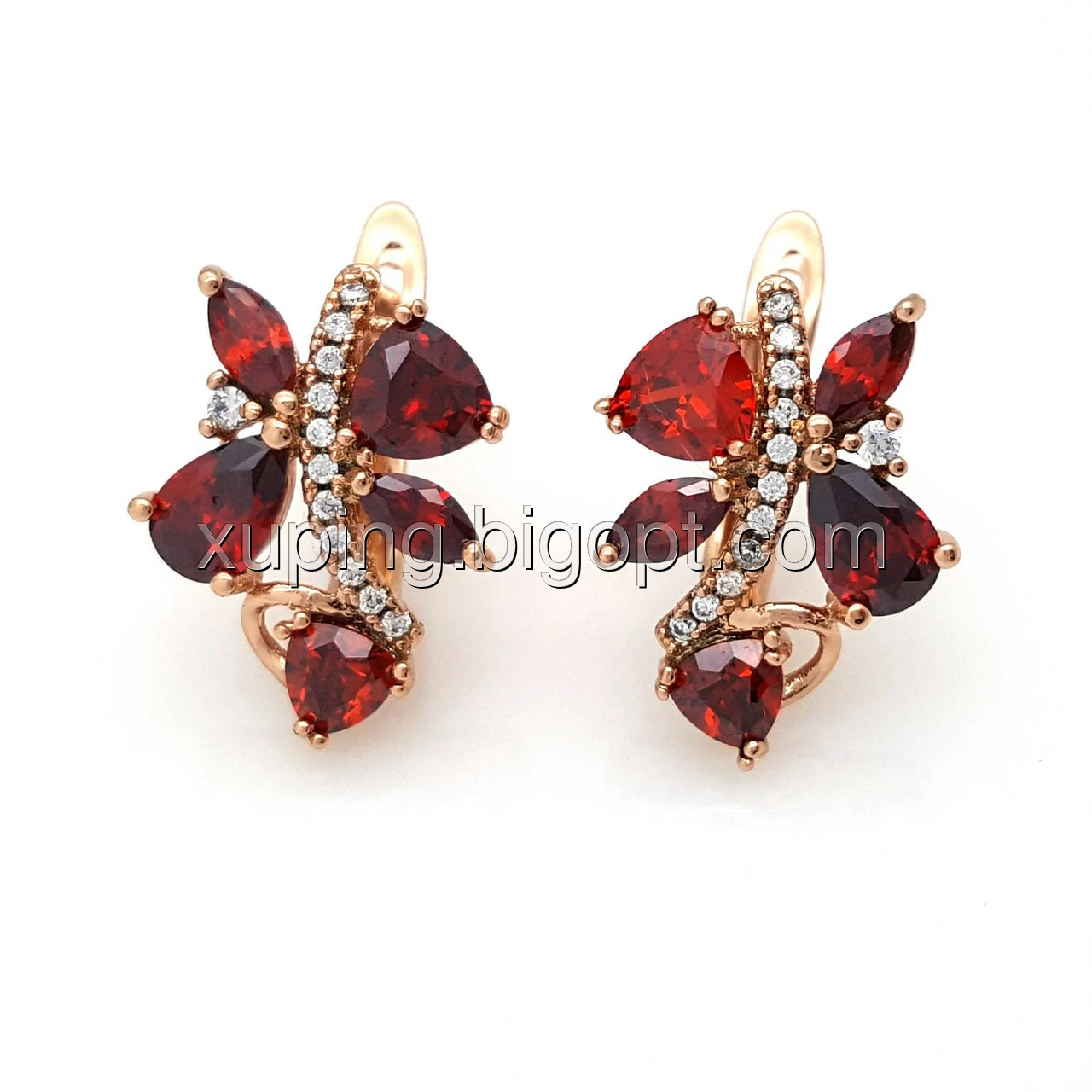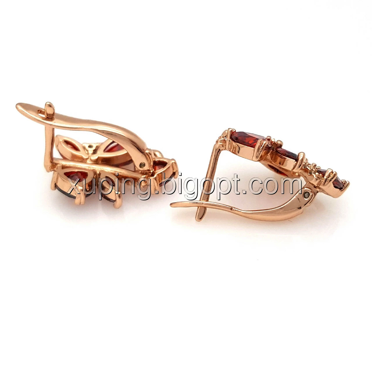 Сережки позолота Xuping, Гілочка з червоним цирконієм, англ.замок, 14К