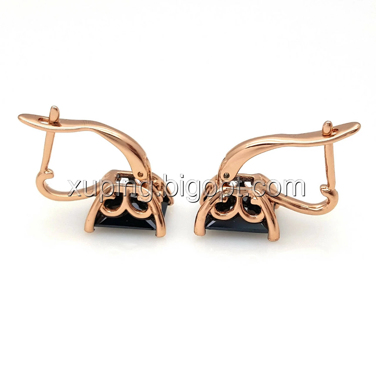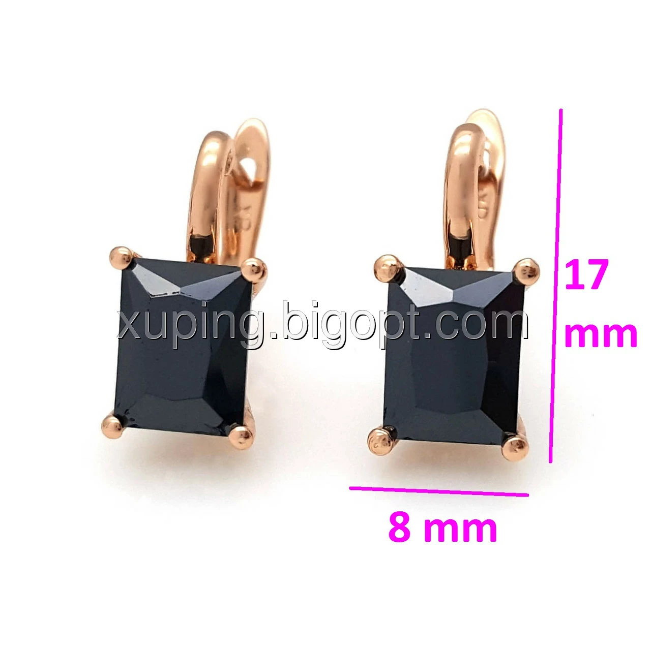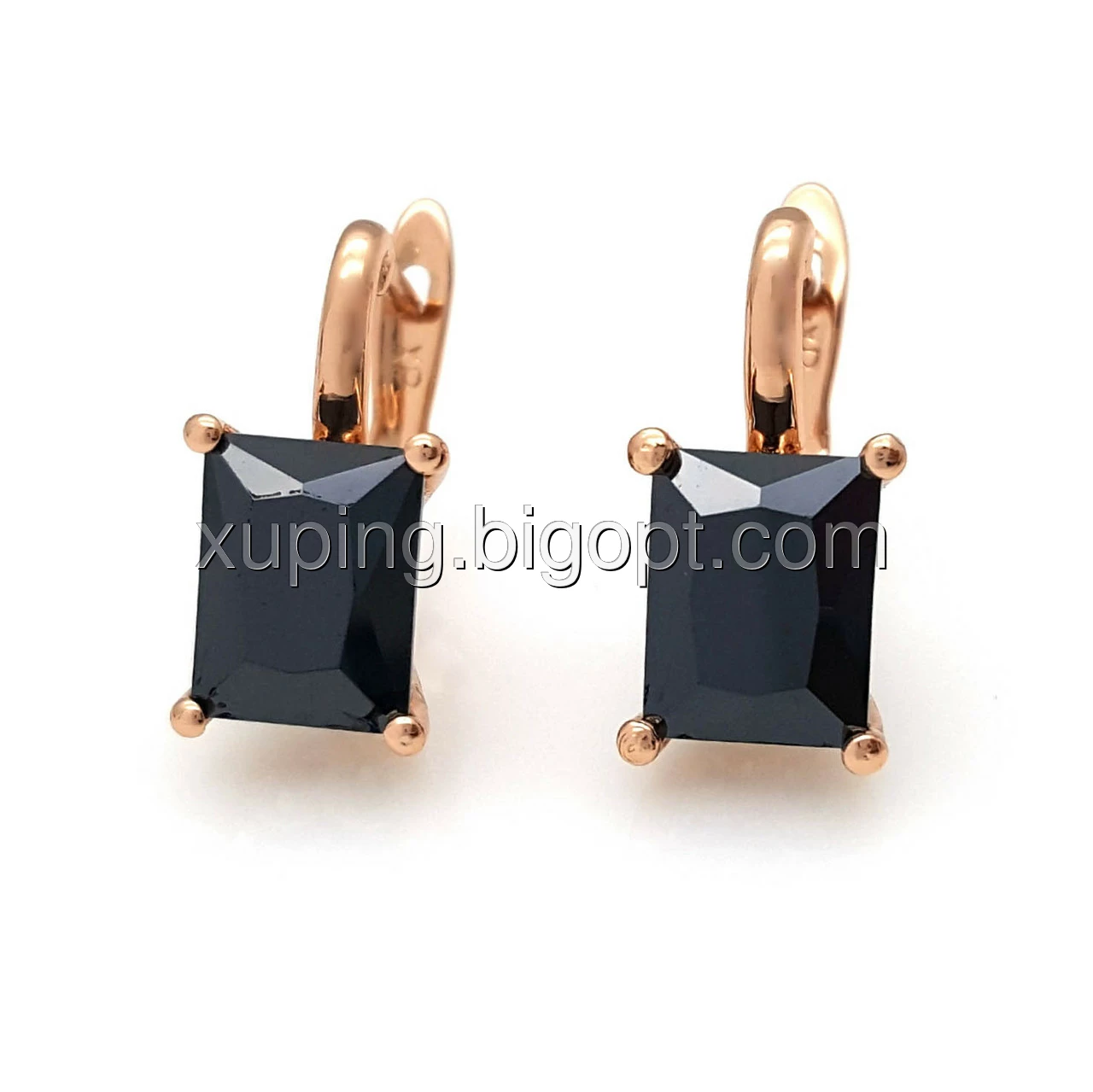 Сережки Прямокутник, чорний цирконій, англ.замок, позолота Xuping,14К