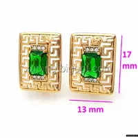 Серьги Прямоугольник, с греческим рисунком и бирюзовым цирконием, англ.замок, позолота Xuping