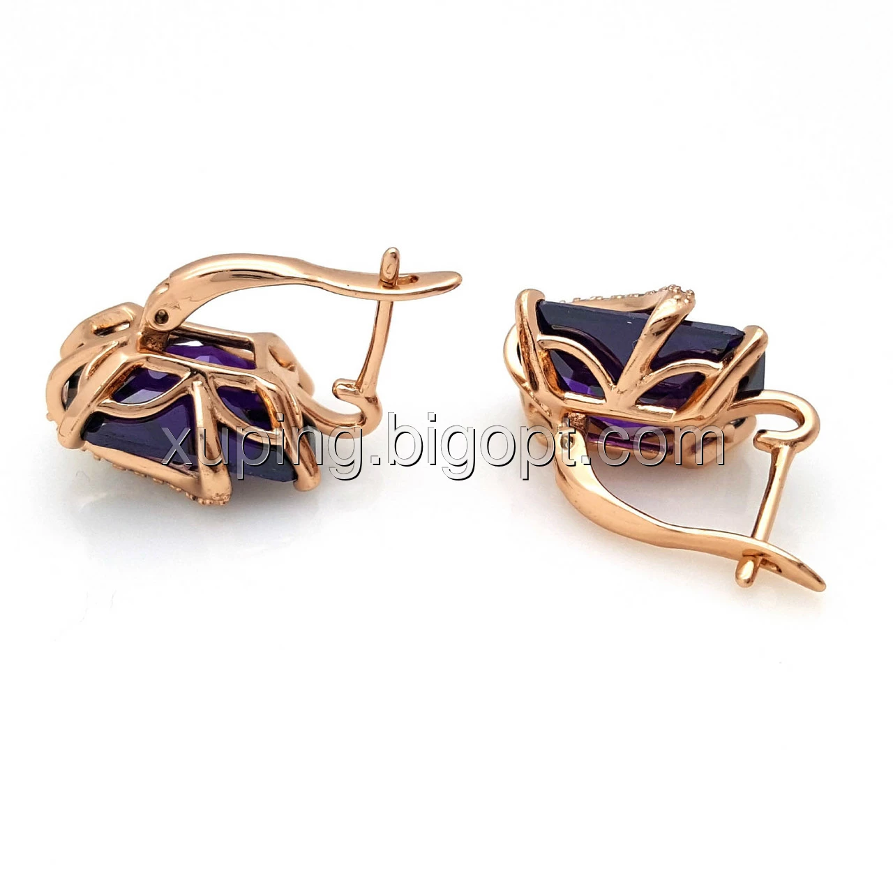 Серьги Прямоугольник, вставка фиолетовый цирконий, англ.замок, позолота