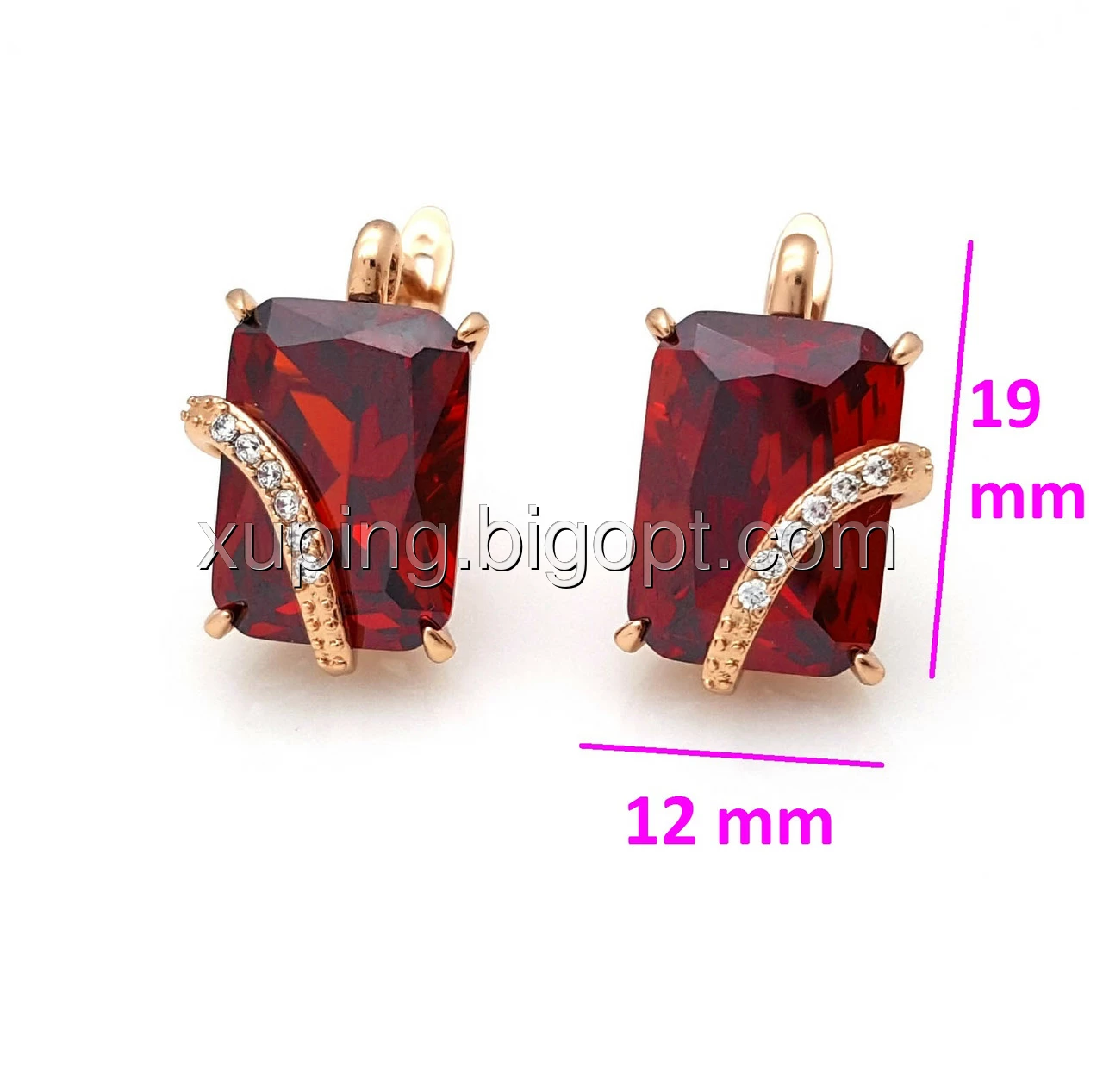 Серьги Прямоугольник, вставка красный цирконий, англ.замок, позолота