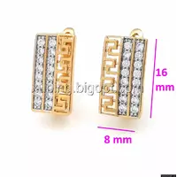 Серьги Прямоугольник, с греческим рисунком и цирконием, англ.замок, позолота+родий