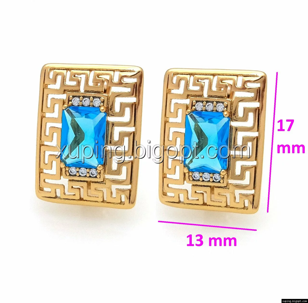 Серьги Прямоугольник, с греческим рисунком и бирюзовым цирконием, англ.замок, позолота Xuping