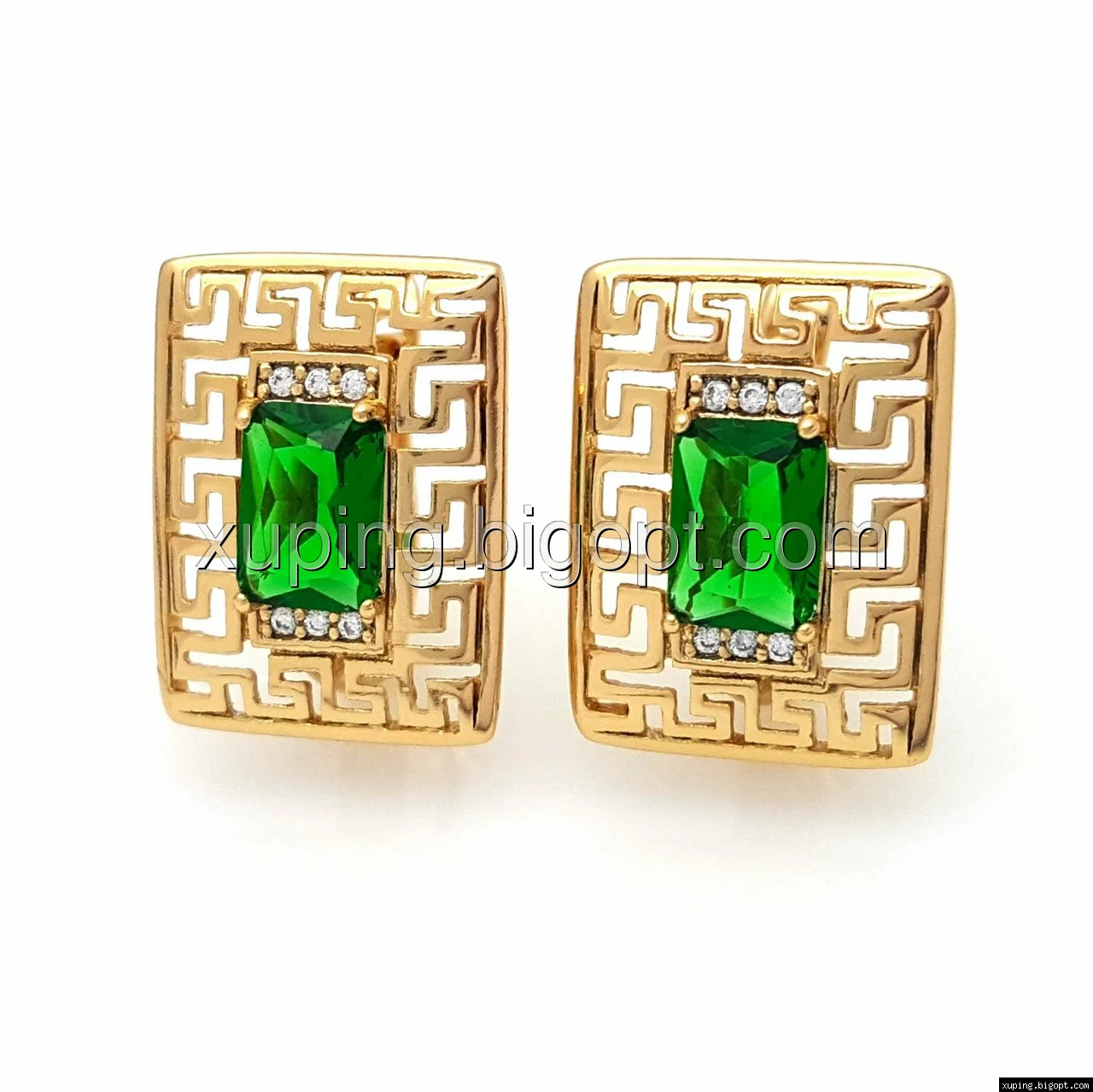 Серьги Прямоугольник, с греческим рисунком и бирюзовым цирконием, англ.замок, позолота Xuping