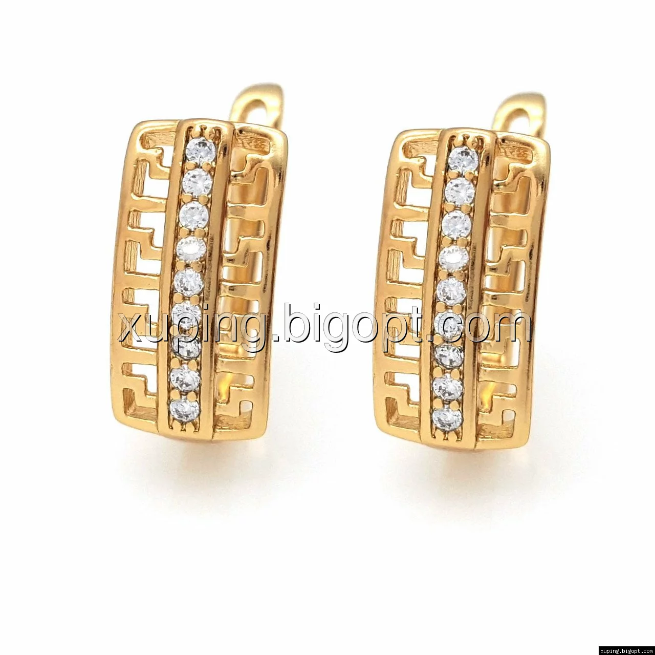 Серьги Прямоугольник, с греческим узором и дорожкой камней, англ.замок, позолота Xuping