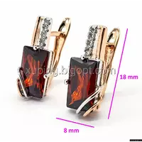 Серьги Прямоугольник, с красным цирконием, англ.замок, позолота+родий