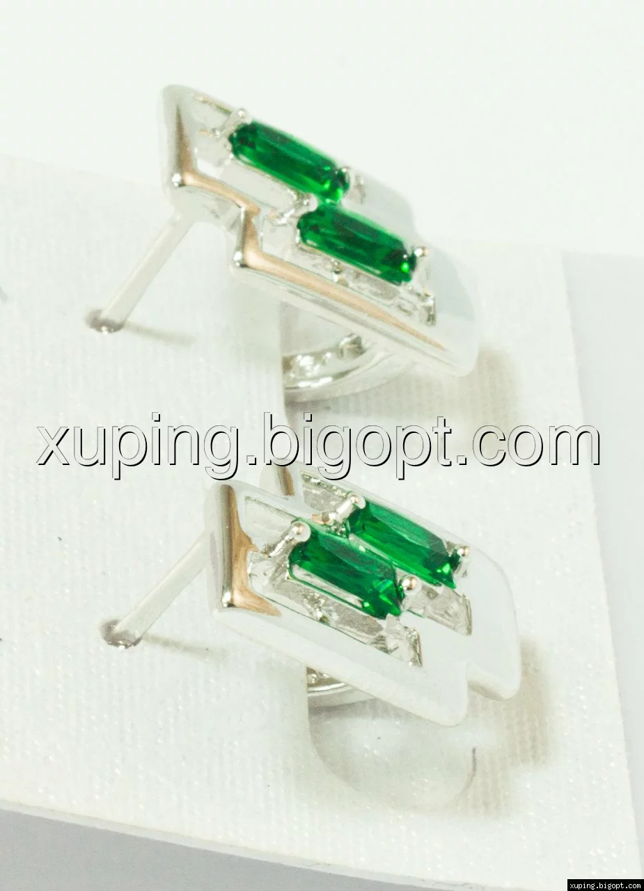 Серьги родий, зеленый цирконий, англ.замок