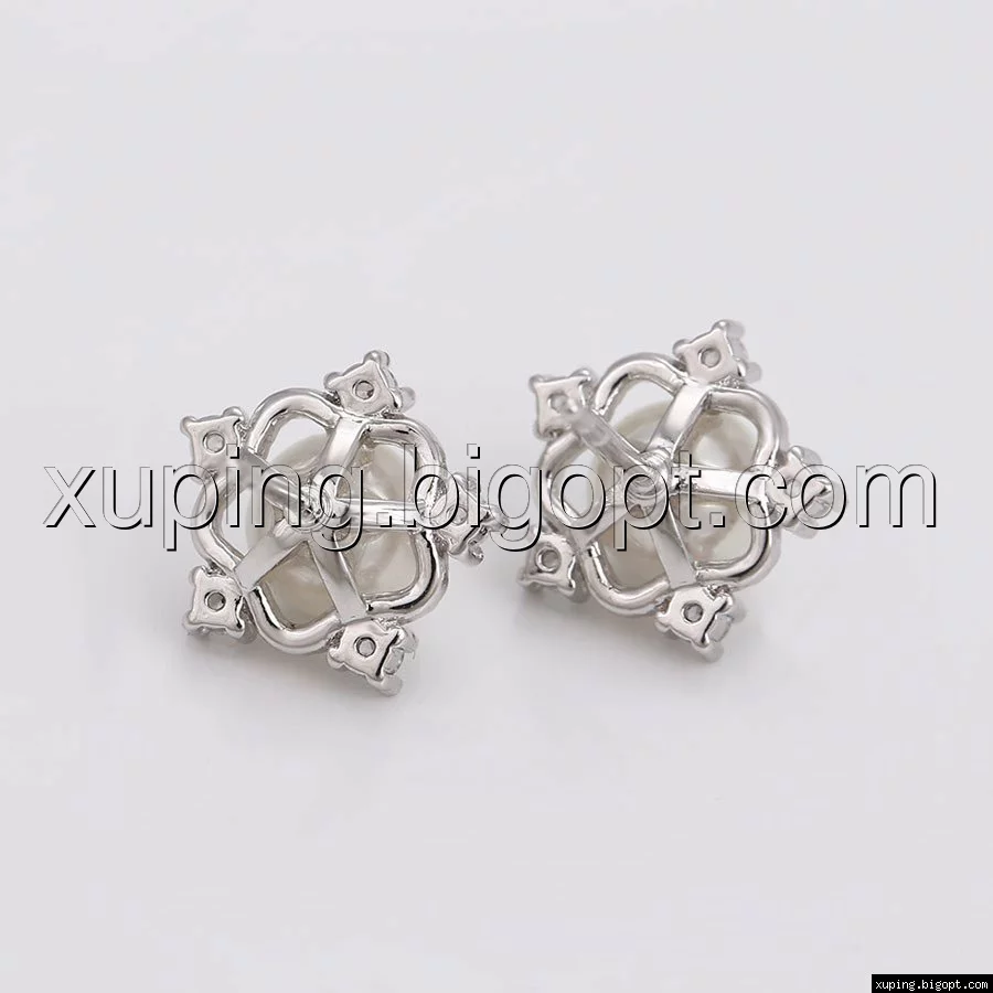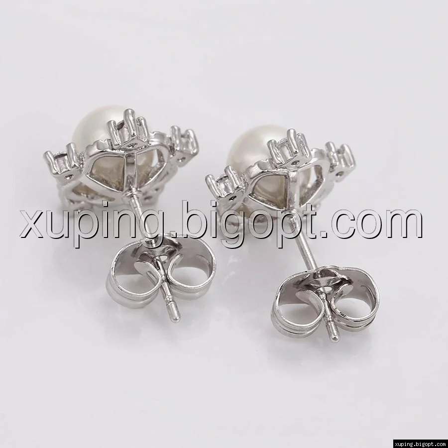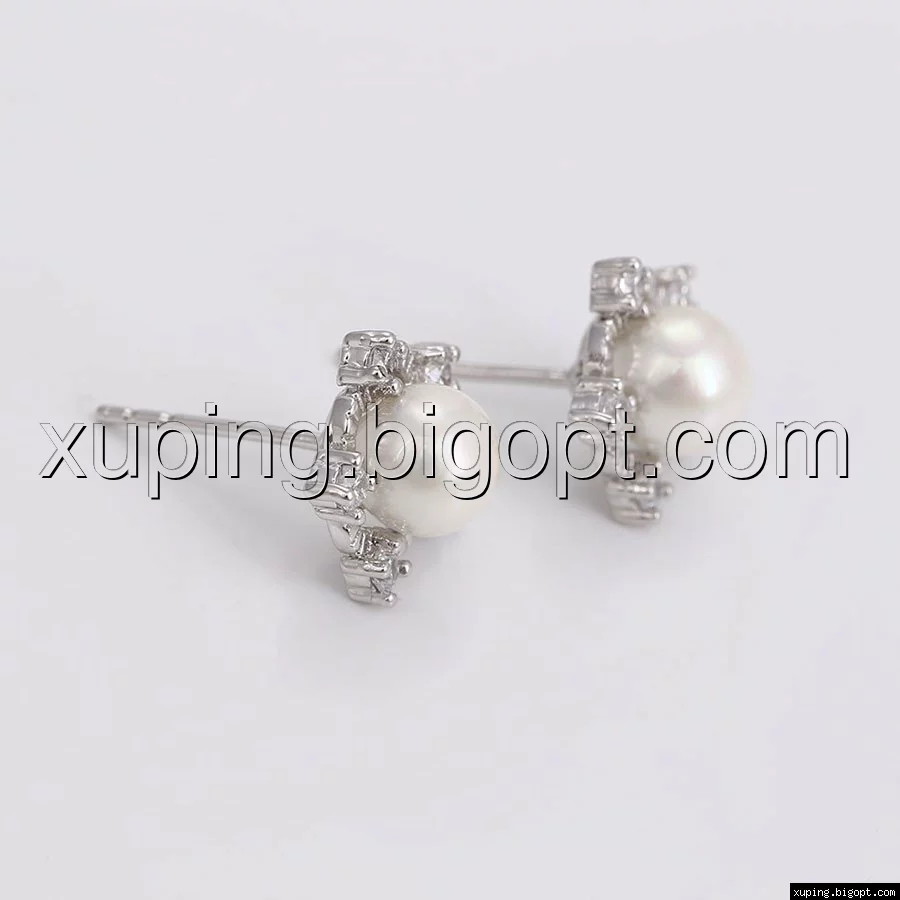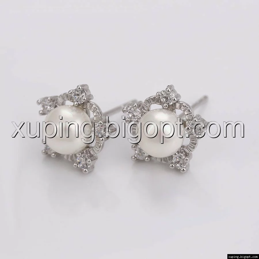 Серьги родий, Снежинка с жемчугом, гвоздики