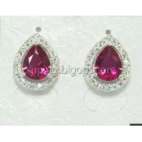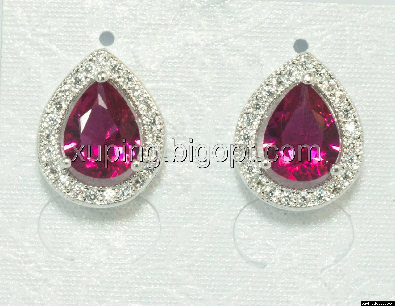 Сережки гвоздики родовані, Кришталева Крапелька, зцирконієм під рубін, Xuping