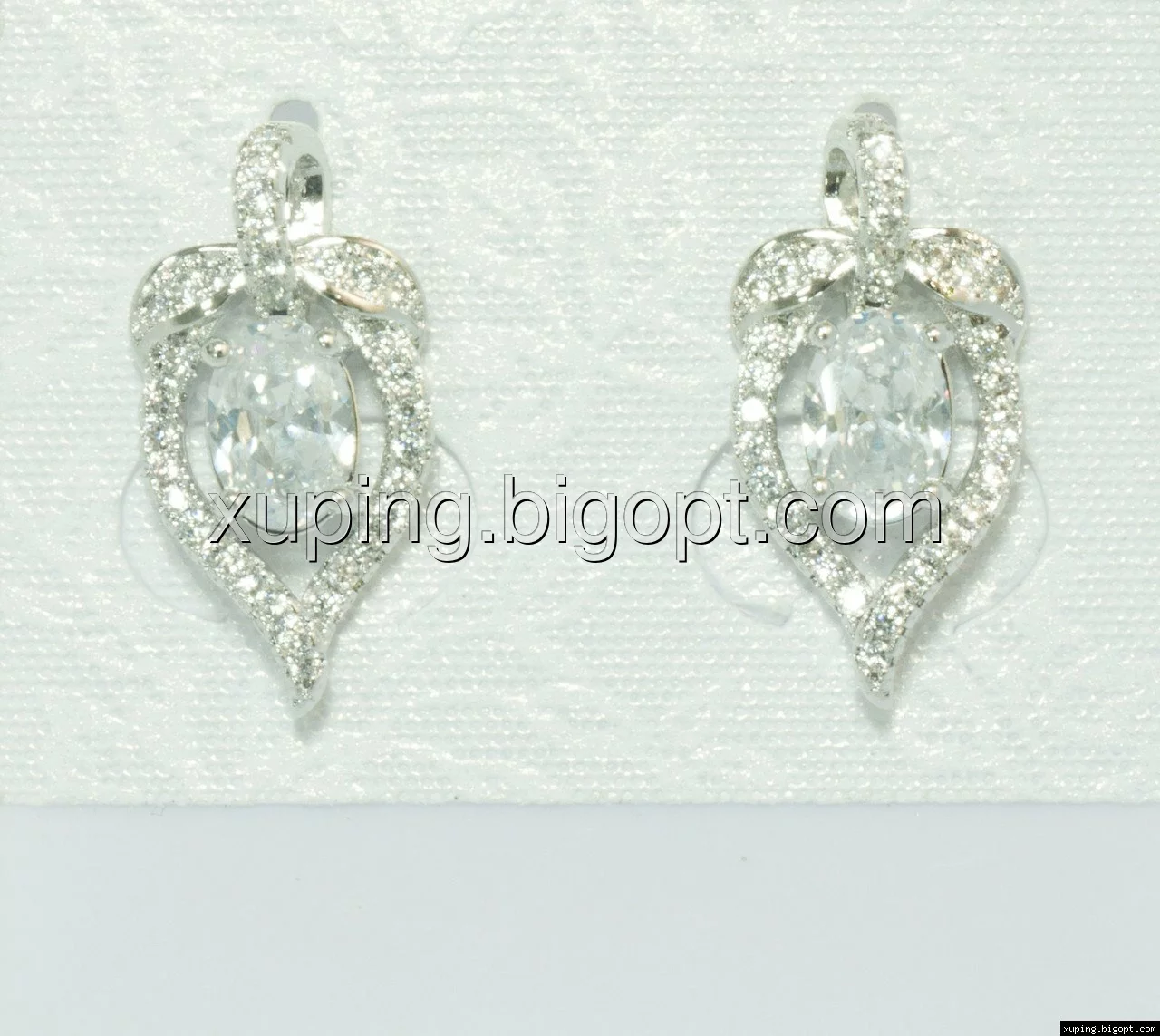 Сережки гвоздики родовані, Листочок в камінчиках, Xuping
