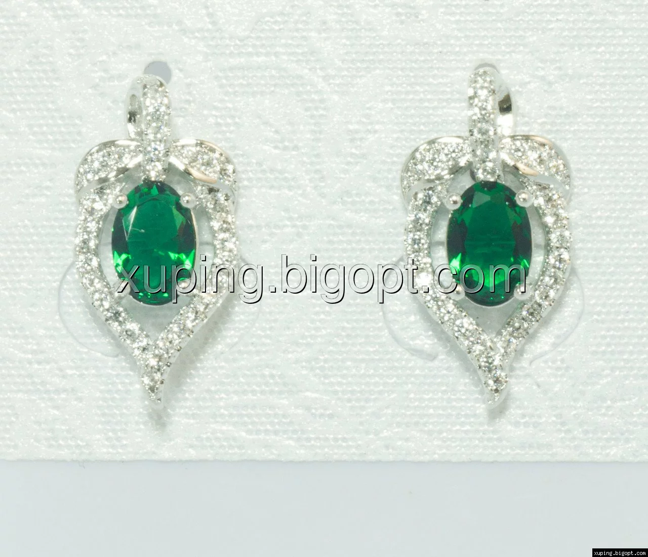 Сережки гвоздики родовані, Листочок з зеленим цирконієм, Xuping