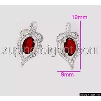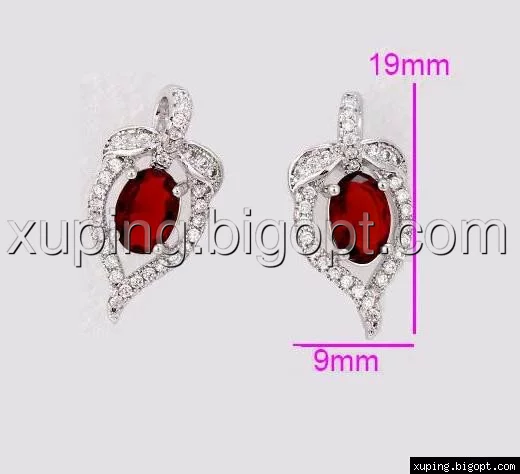 Сережки гвоздики родовані, Листочок з червоним цирконієм, Xuping