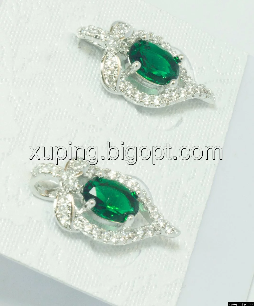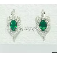 Серьги родированные гвоздики 19мм*9мм, зеленый цирконий