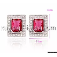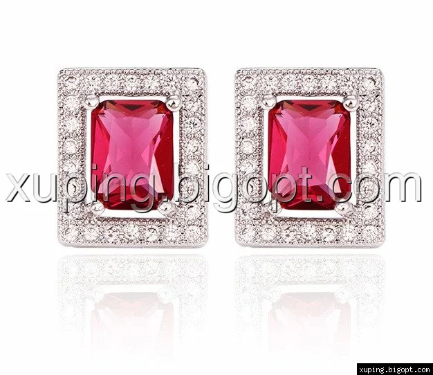 Серьги родированные гвоздики, красный цирконий