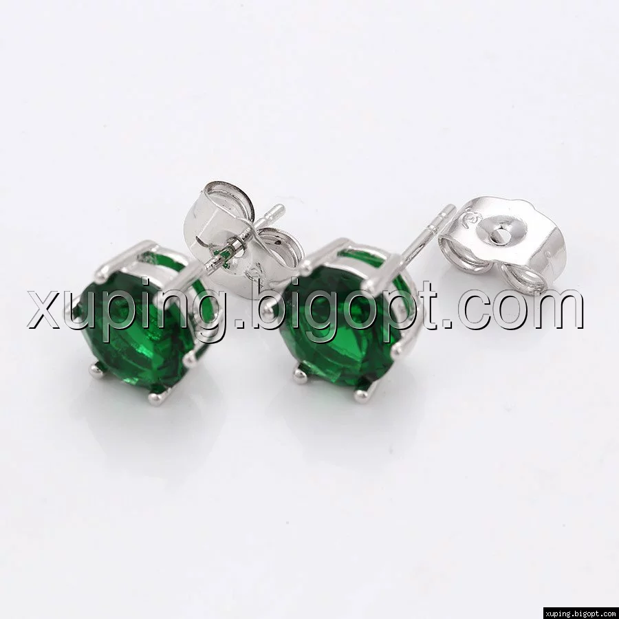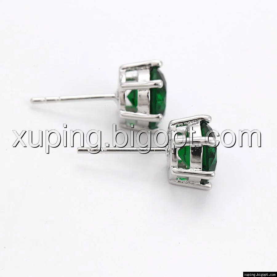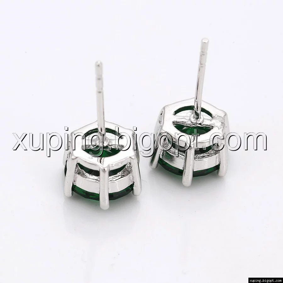 Сережки цвяшки родовані, Зелений цирконій, Xuping