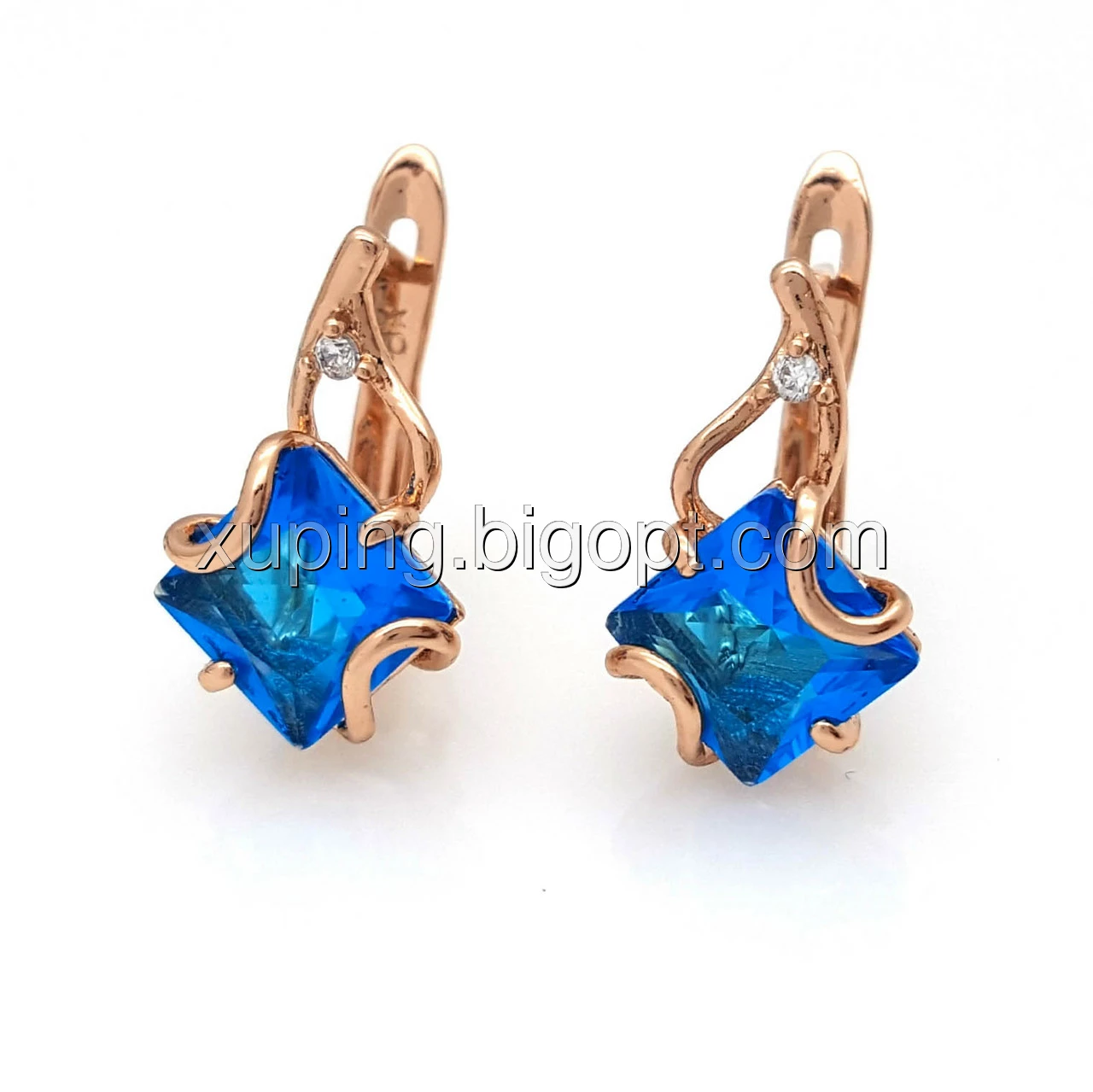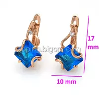 Серьги Ромб с бирюзовым цирконием, англ.замок, позолота Xuping, 14К