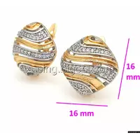 Сережки Ромб, з розсипом цирконію, англ.замок, позолота+родій, Xuping, 18К