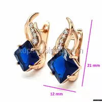 Серьги Ромб с синим камнем, англ.замок, позолота